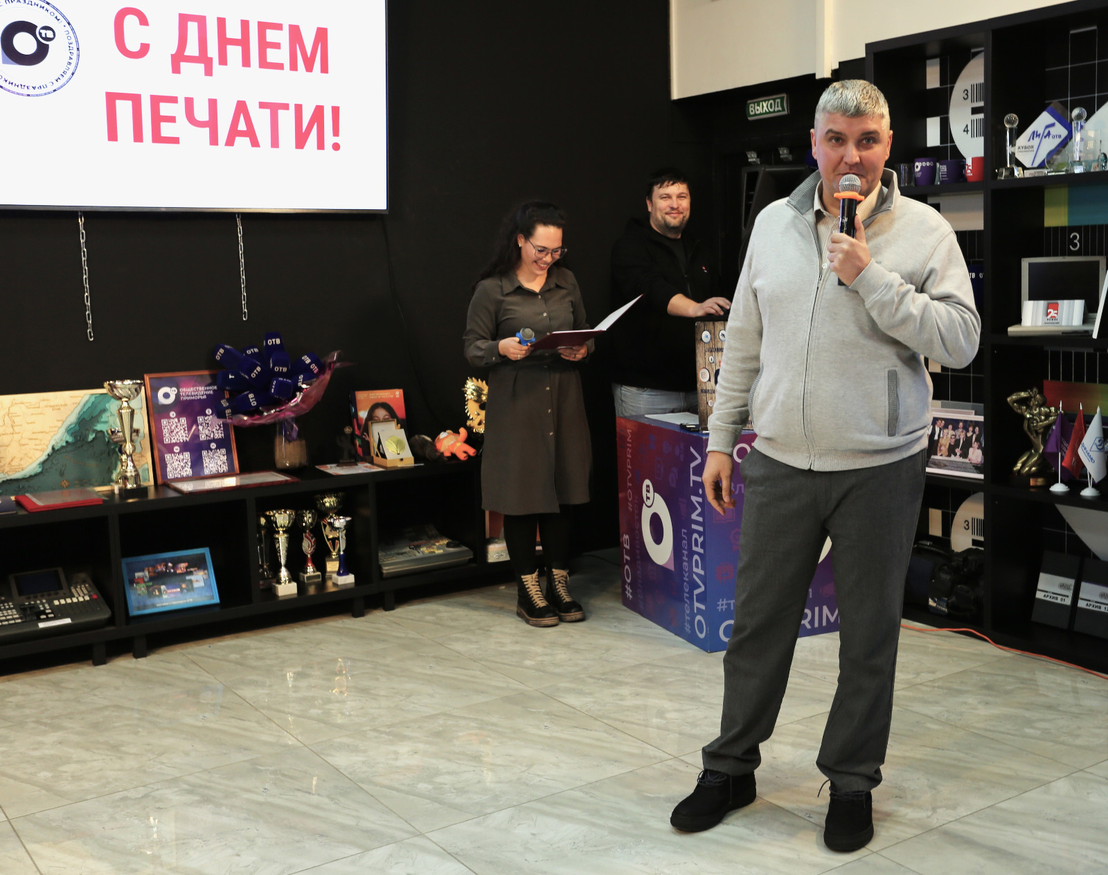 Поздравляя сотрудников ОТВ-Прим, Андрей Брик отметил: «День российской печати - это профессиональный праздник всех, кто работает не только в печатных, но и электронных средствах массовой информации. Общественное телевидение Приморья, пройдя через все этапы развития, стало сегодня мощным информационным ресурсом региона. В центре его внимания - новости об общественно-политической, экономической, социальной и культурной жизни Владивостока и Приморья. Благодаря ОТВ-Прим люди видят, какие события происходят в городе и крае, узнают о трудовых достижениях и ратных подвигах, патриотизме наших земляков. Большая популярность и доверие зрителей к Общественному телевидению Приморья – результат слаженного труда высокопрофессиональных, компетентных, ответственных сотрудников, которые знают и любят свое дело, находят интересные и актуальные темы для телепередач, новые формы подачи информации, широко используют в работе современные технологии».