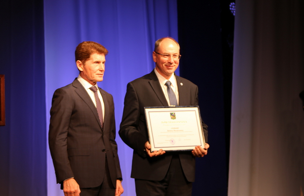 На торжественном мероприятии Андрей Брик вручил награды Думы города Владивостока сотрудникам ДВО РАН. Почетной грамотой Думы города Владивостока награждена главный специалист-документовед Ирина Тихонова, Благодарностью Думы города Владивостока - техник эксплуатационно-технического отдела Елена Кашникова, заведующий сектором закупок ДВО РАН Елена Козырева, доктор медицинских наук, главный научный сотрудник лаборатории респираторных инфекций ФГБНУ «Научно-исследовательский институт эпидемиологии и микробиологии им. Г.П. Сомова» Татьяна Запорожец.