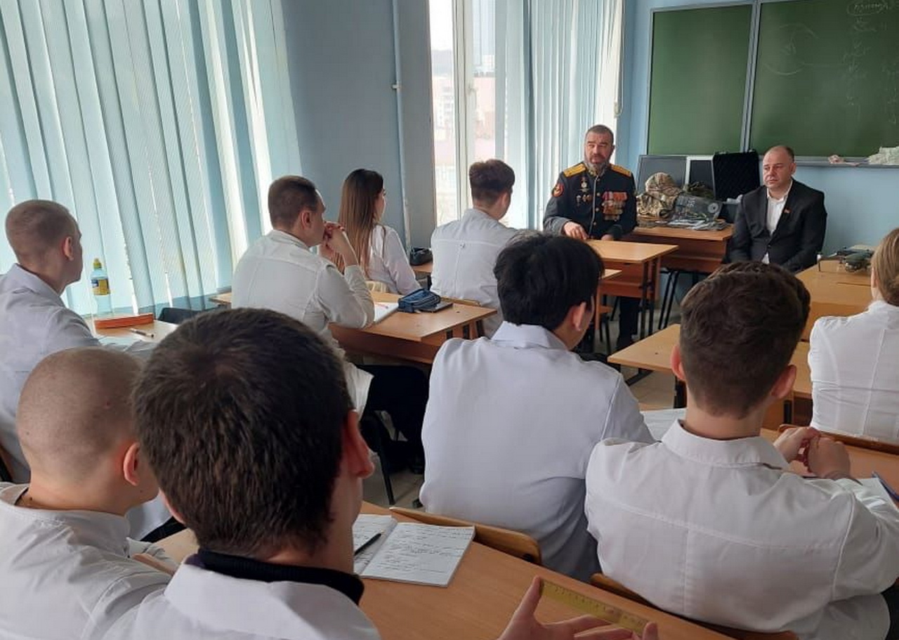 В мероприятии, состоявшемся в Тихоокеанском государственном медицинском университете, приняли участие депутат Думы города Владивостока, участник СВО Виктор Тарабарин, ветераны специальной военной операции - гвардии подполковник 155-й отдельной гвардейской Курской орденов Жукова и Суворова бригады морской пехоты ТОФ Константин Телятьев, представитель военно-патриотического клуба «Де-Фриз» Вячеслав Бедных, студенты 2 курса ТГМУ.
