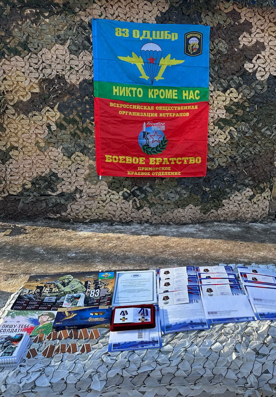 Бойцы 83-й отдельной гвардейской десантно-штурмовой ордена Суворова бригады ВДВ подписали флаги ВДВ для передачи генерал-полковнику Владимиру Шаманову, Святейшему Патриарху Кириллу. Военнослужащим были вручены ведомственные награды от имени депутата Госдумы ФС РФ Виктории Николаевой, а также медали «За ратную доблесть».