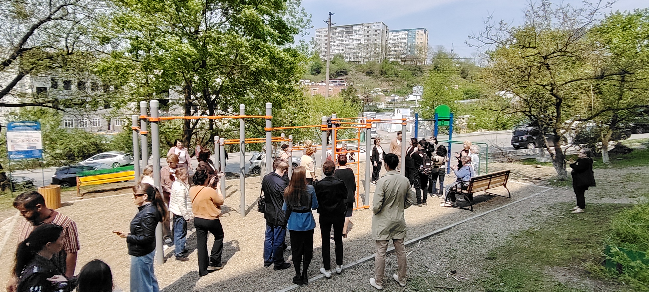 Участники мероприятий - активисты и председатели ТОС города Владивостока и Приморья в ходе трехчасовой экскурсии посетили дворы, скверы, спортивные и детские площадки, благоустроенные по грантам конкурса ТОС.