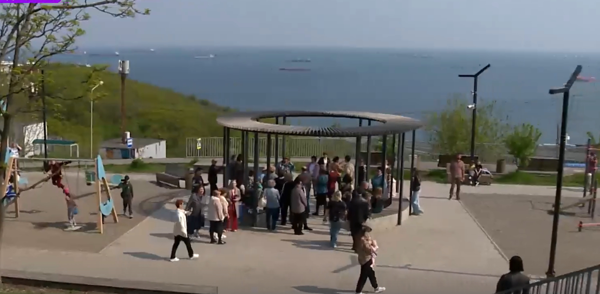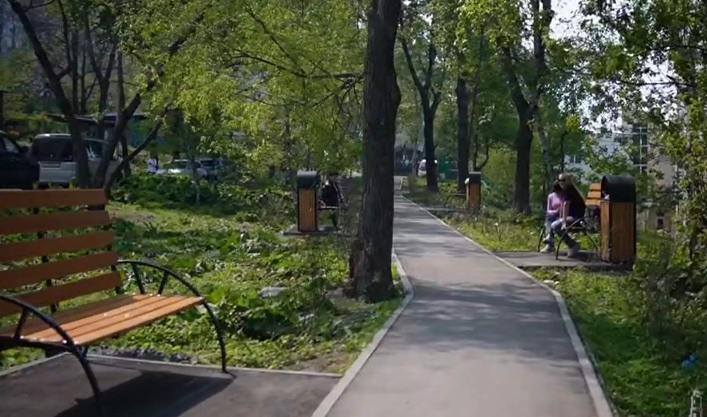 Завершающим пунктом в экскурсии была группа ТОСов в районе бухты Тихой, где благоустроенный сквер на ул. Добровольского также стал наглядным примером комплексного благоустройства по проектам ТОС и «1000 дворов Дальнего Востока».