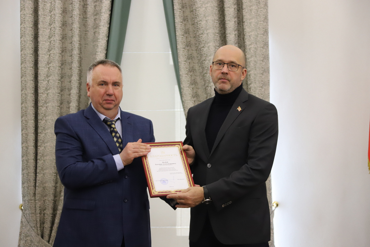 Заместитель главы администрации города Владивостока Константин Стоценко вручил Благодарности главы города Владивостока депутатам Евгению Недбаю, Геннадию Смирнову и Александру Юртаеву.