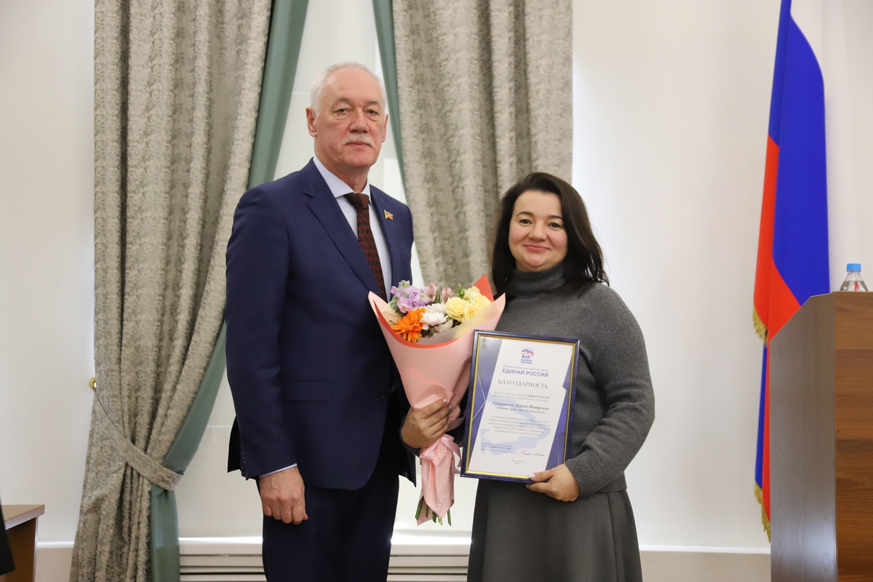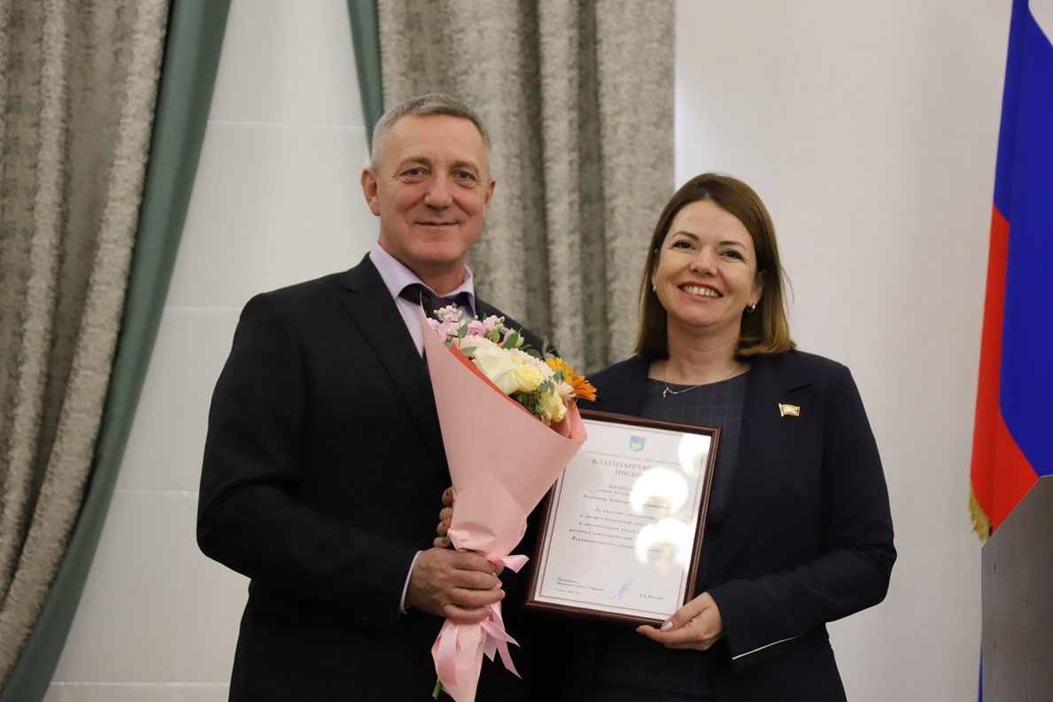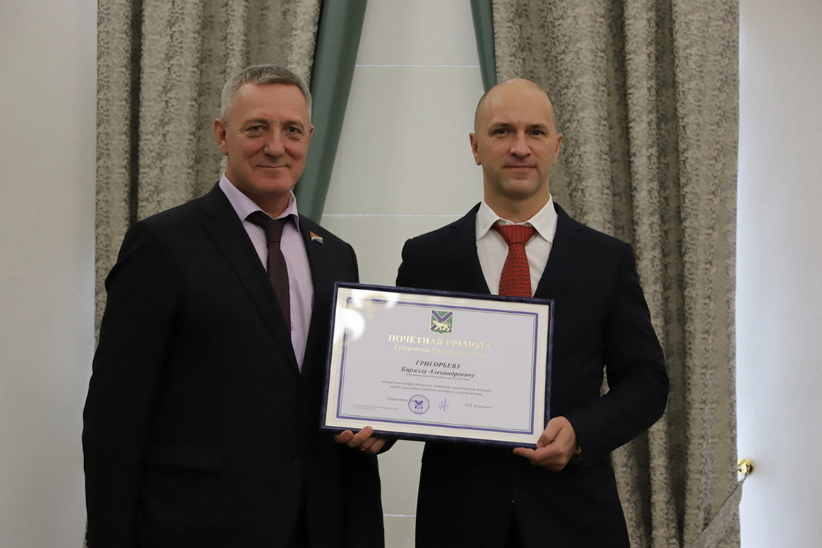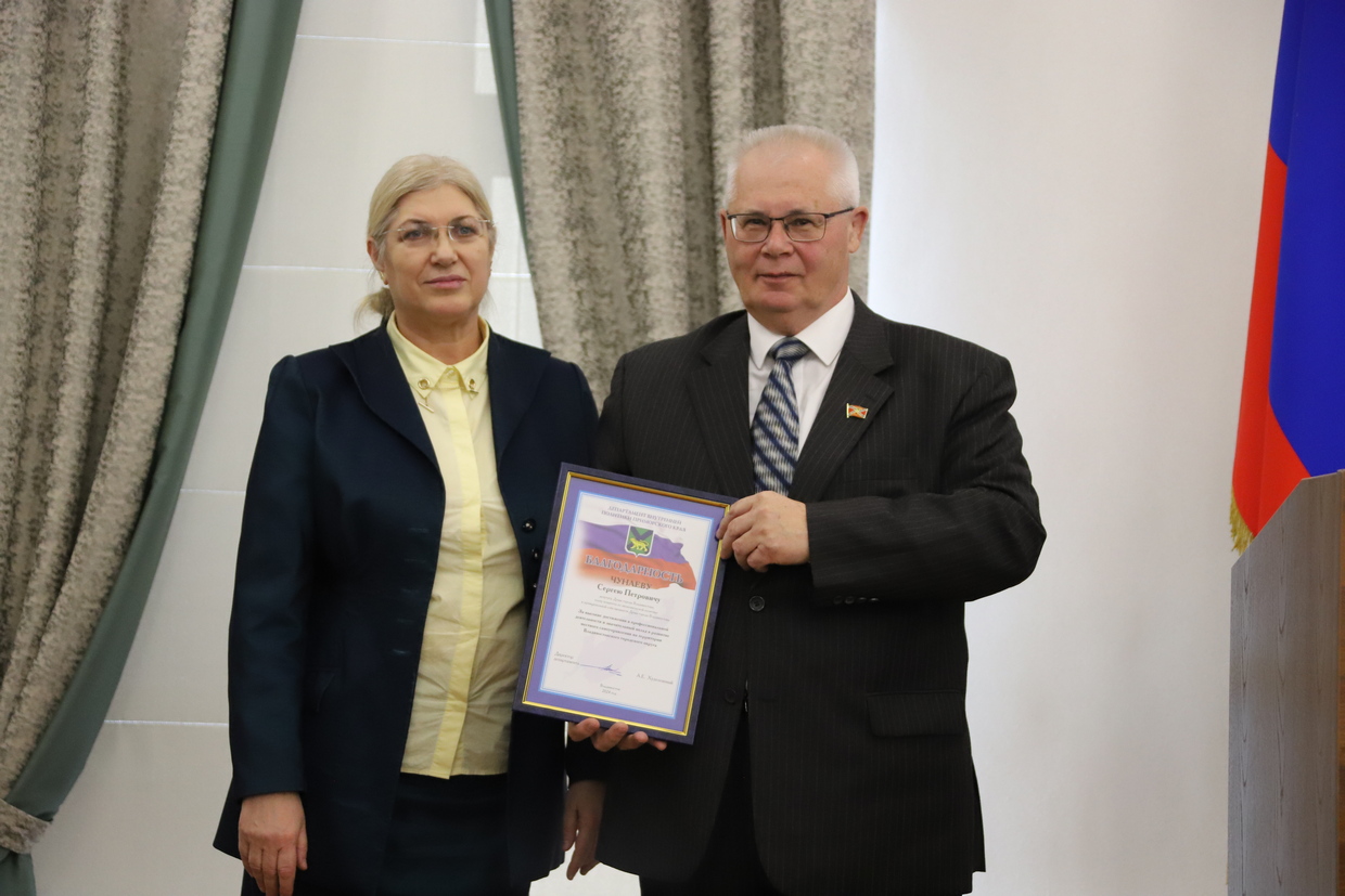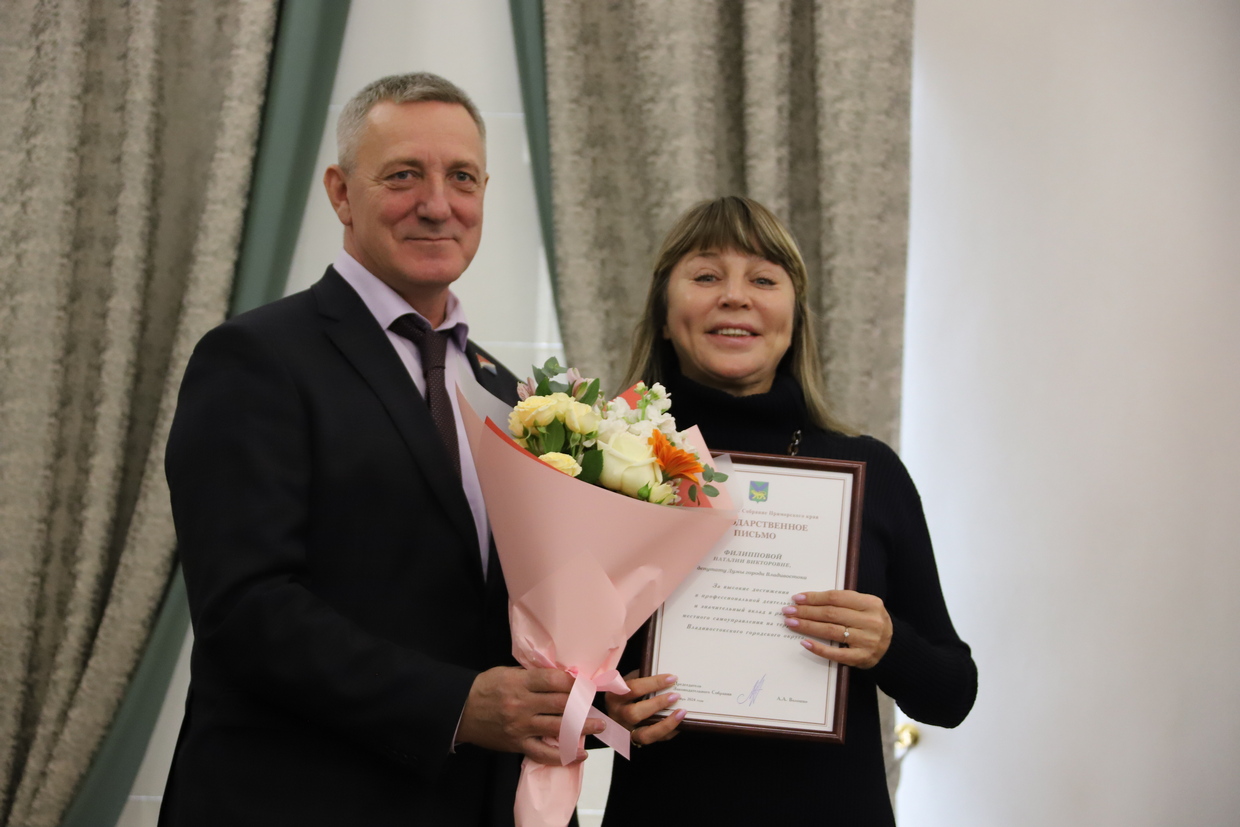 Сергей Кузьменко вручил Почетную грамоту Губернатора Приморского края заместителю председателя Думы города Владивостока Кириллу Григорьеву, Благодарственное письмо Губернатора Приморского края – депутату Артёму Володину, Благодарственные письма Законодательного собрания Приморского края – Инне Кошелевой и Наталии Филипповой.