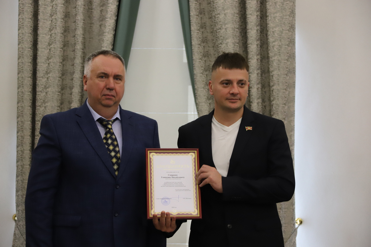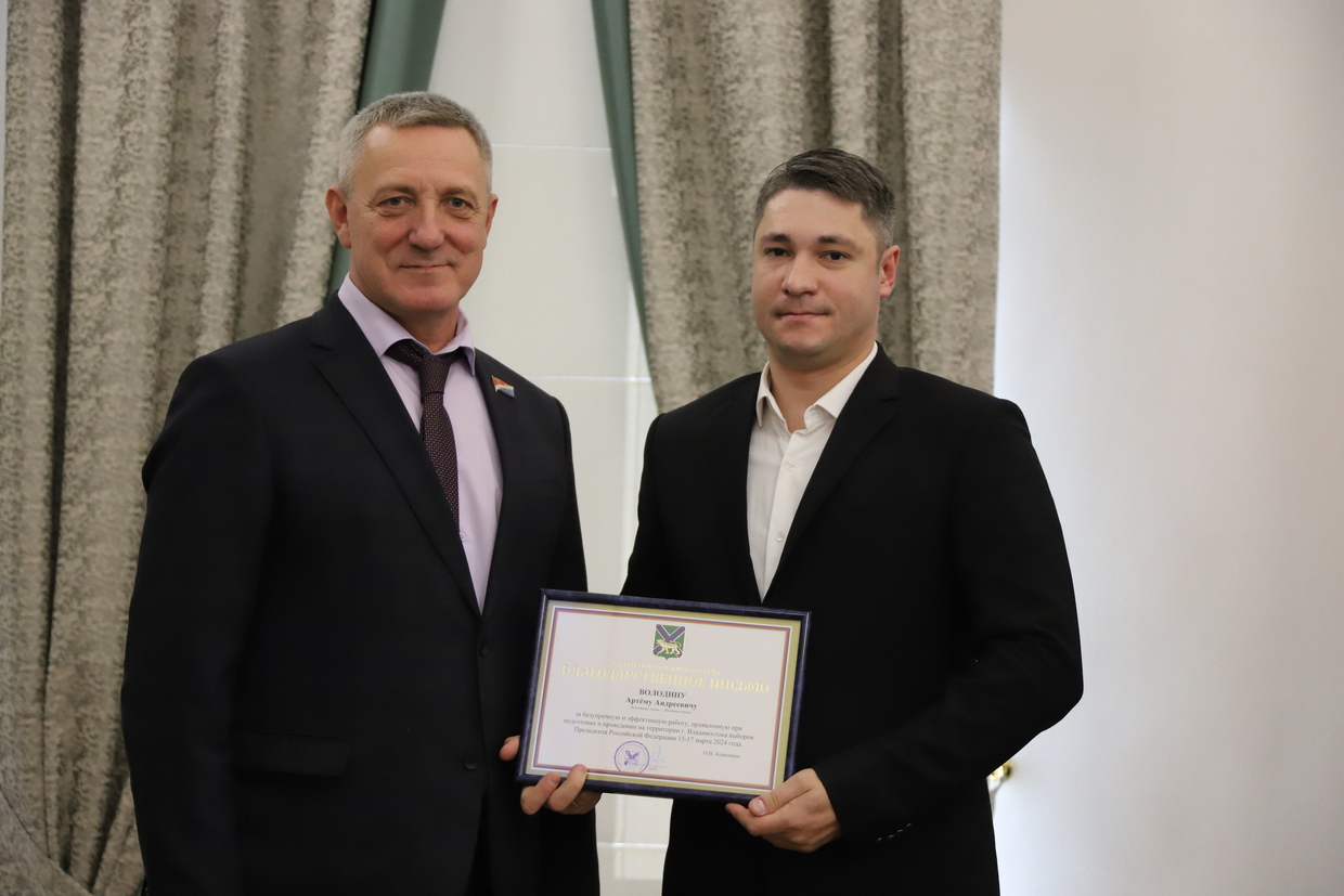 Благодарностью департамента внутренней политики Приморского края награждены депутаты Илья Орлов и Сергей Чунаев. Благодарностью Думы города Владивостока – депутат Александр Аксенов, Благодарностью местного отделения партии «Единая Россия» Владивостокского городского округа – депутаты Станислав Примаченко и Дарья Грицаенко.