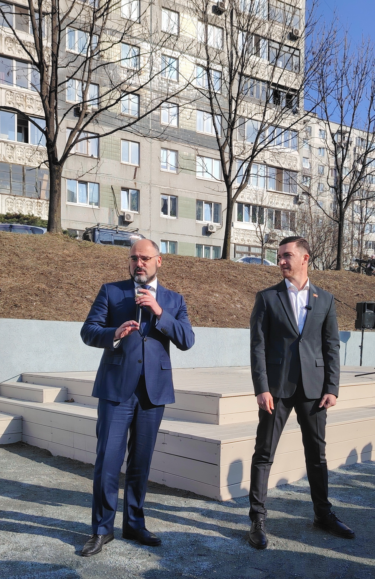 Глава Владивостока Константин Шестаков и депутат Александр Бондяев открыли новый сквер на кольце 3-й Рабочей