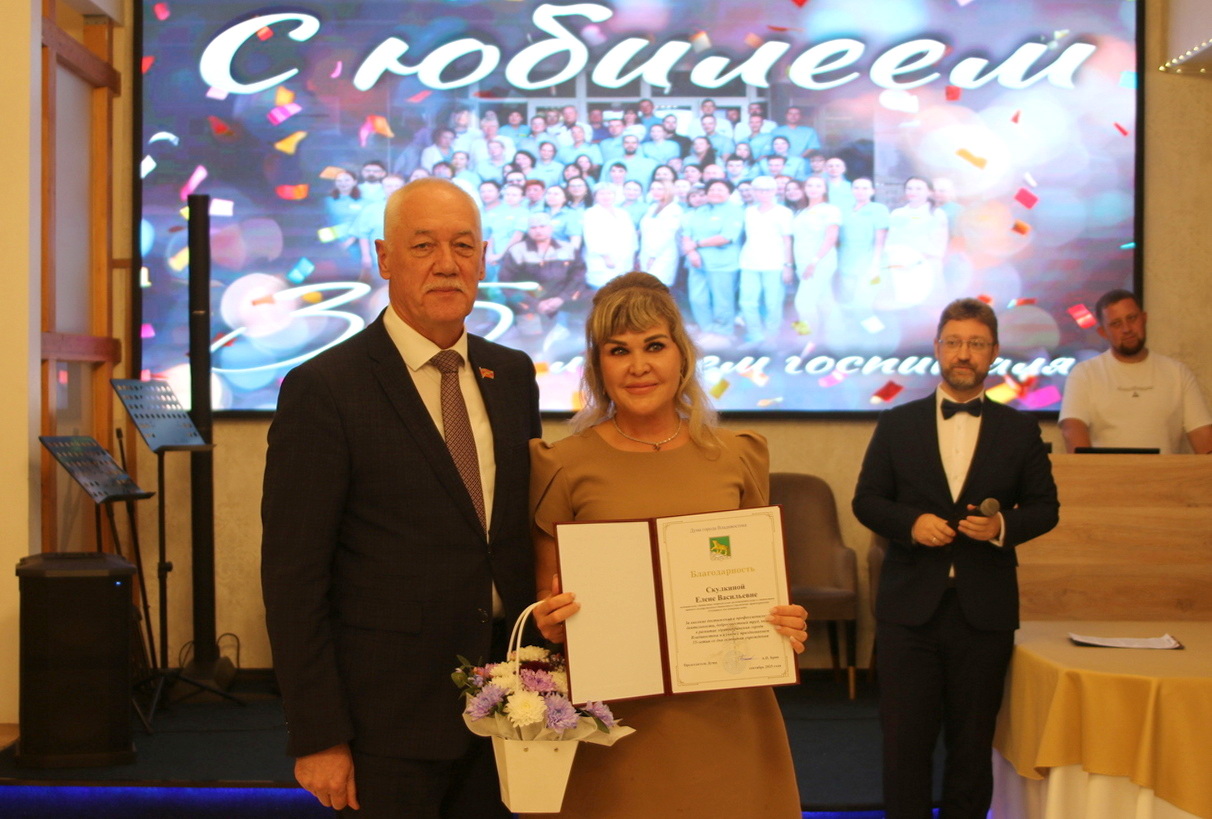 Почетной грамотой Думы города Владивостока награждены старшая медицинская сестра Ирина Абрамова, врач-анестезиолог-реаниматолог Виталий Филатов, Благодарностью Думы города Владивостока - медицинская сестра Ольга Ковжун, начальник планово-экономического отдела Ольга Лебедянская, медицинский статистик Елена Скулкина.