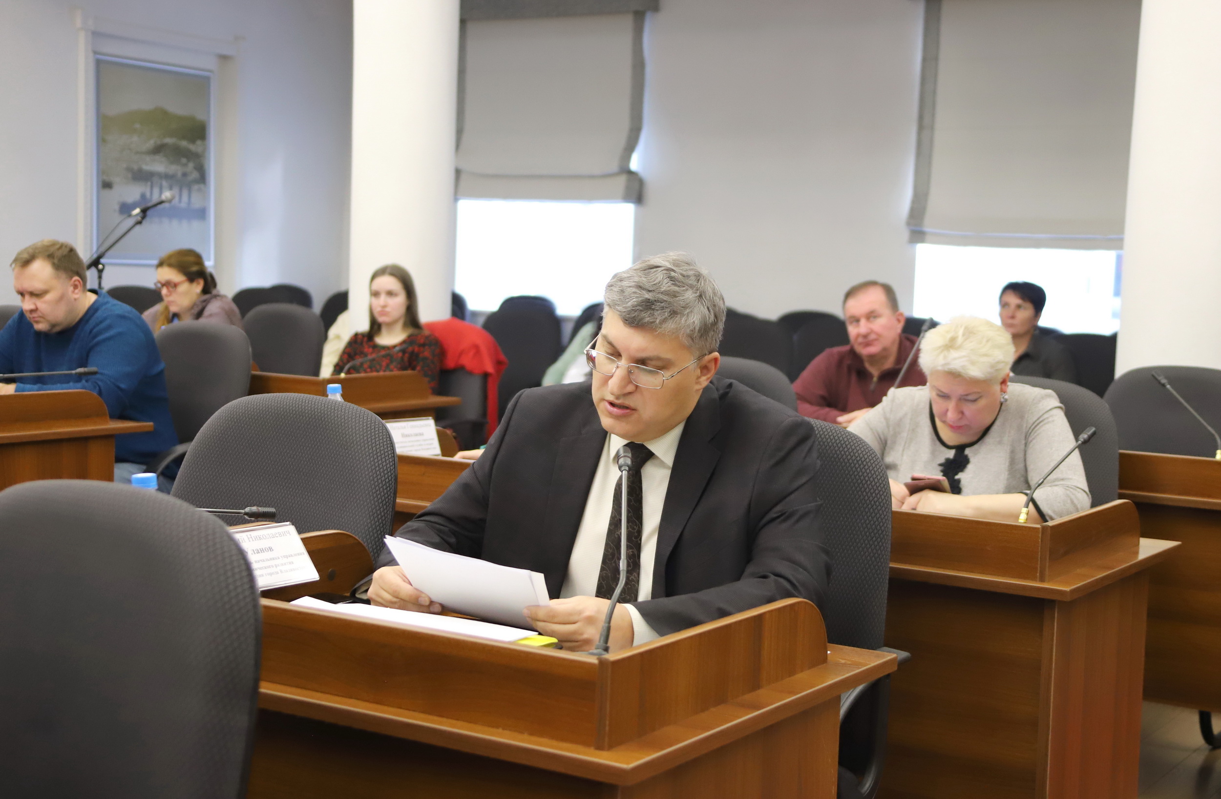 Об основных параметрах бюджета Владивостокского городского округа на 2025 год и плановый период 2026 и 2027 годов доложили первый заместитель главы администрации города Сергей Дмитриенко, заместитель начальника управления финансов администрации города Ирина Швайкова, заместитель начальника управления экономического развития Виталий Уланов.