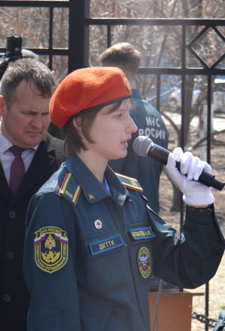 Выступившая от имени студентов колледжа староста учебной группы ПБ-21 отделения Пожарной безопасности, отличник учебы стипендиат Губернатора Приморского края Арина Богомолова подчеркнула, что сегодня, в непростое для всех время, когда снова решается судьба нашей страны, мы должны сплотиться вокруг Верховного Главнокомандующего - Президента страны, который сегодня символизирует величие России, ее будущее.