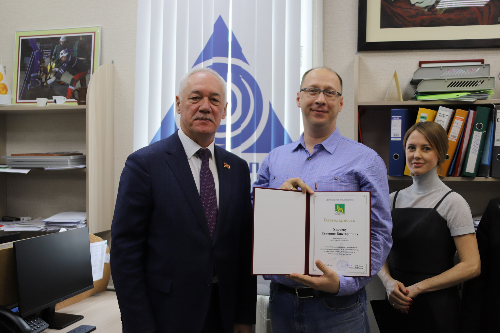 «Высокий профессионализм, мастерство, опыт, ответственный подход к делу, позволяет вам на высоком качественном уровне выполнять эти работы, делая мир безопаснее, защищая людей и окружающую среду от потенциальных техногенных угроз», - обратился председатель Думы города Владивостока Андрей Брик к сотрудникам ООО «ПримТехнополис». Он отметил, что за годы работы компания заняла видное место в области радиационной и химической безопасности, а также зарекомендовала себя социально ответственным предприятием, которое активно участвует в социальных проектах, в том числе в благотворительных акциях в поддержку военнослужащих специальной военной операции, жителей Донецкой Народной Республики, Курской области.