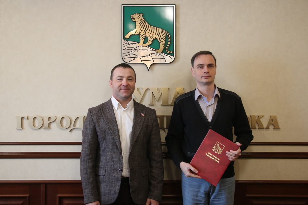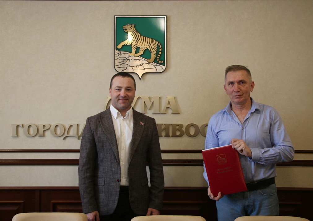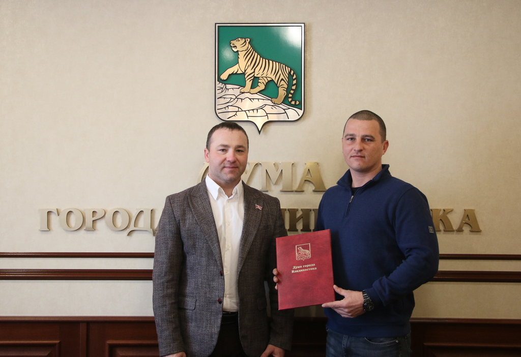 Депутат Думы города Владивостока Денис Русинов вручил сотрудникам группы компаний «Доброфлот» Почетные грамоты и Благодарности Думы города Владивостока.