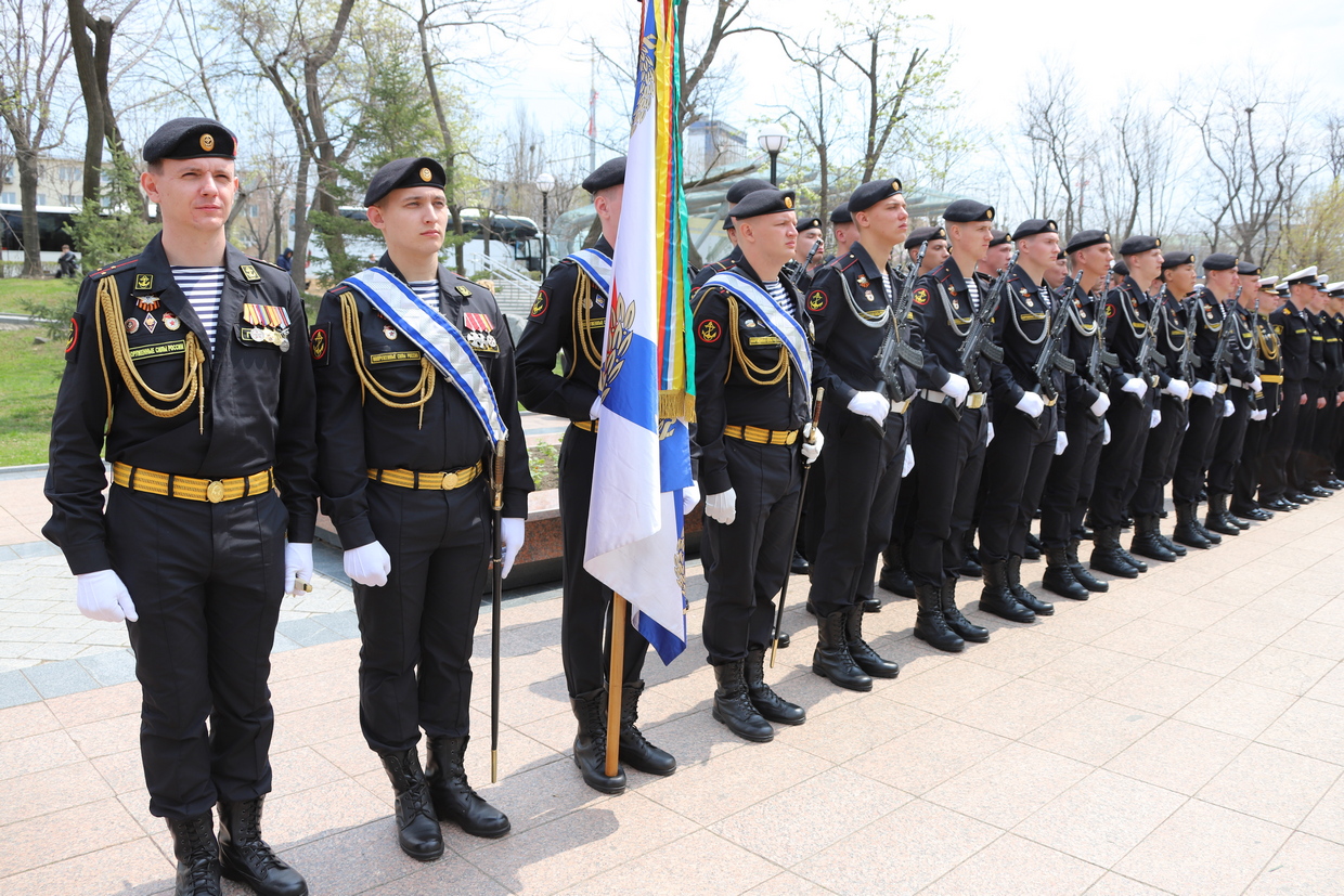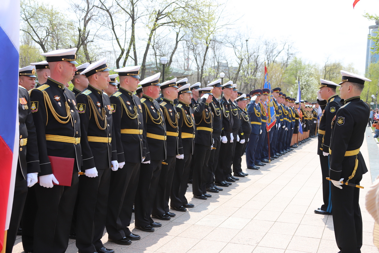 В завершение торжественной части под звуки духового оркестра личный состав отдельных частей Владивостокского гарнизона, курсанты прошли торжественным маршем по Аллее Героев перед установленными там портретами героев Великой Отечественной войны и специальной военной операции.