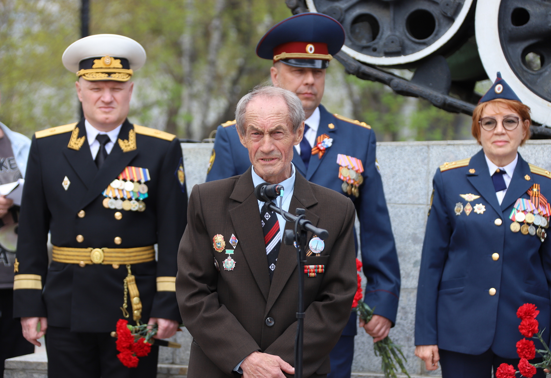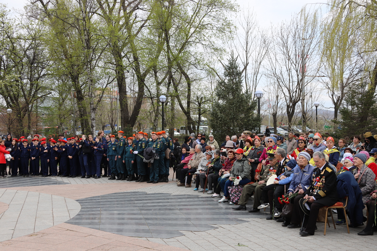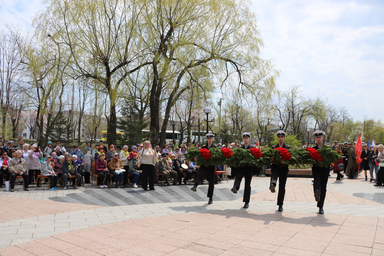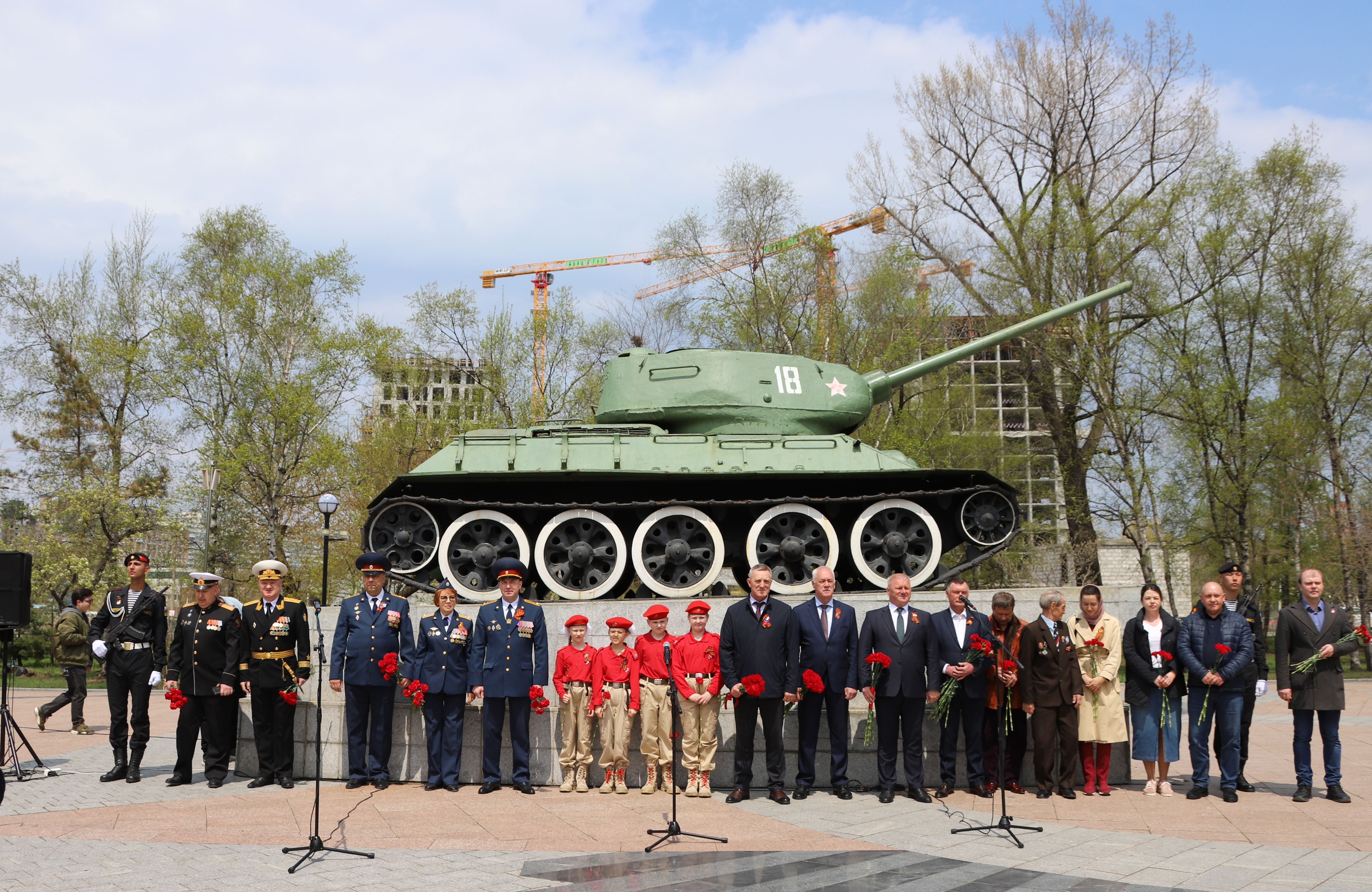 Во Владивостоке в Парке Победы у памятника танковой колонне «Приморский комсомолец» прошло торжественное мероприятие, посвященное 80-летию Победы советского народа в Великой Отечественной войне 1941-1945 годов.