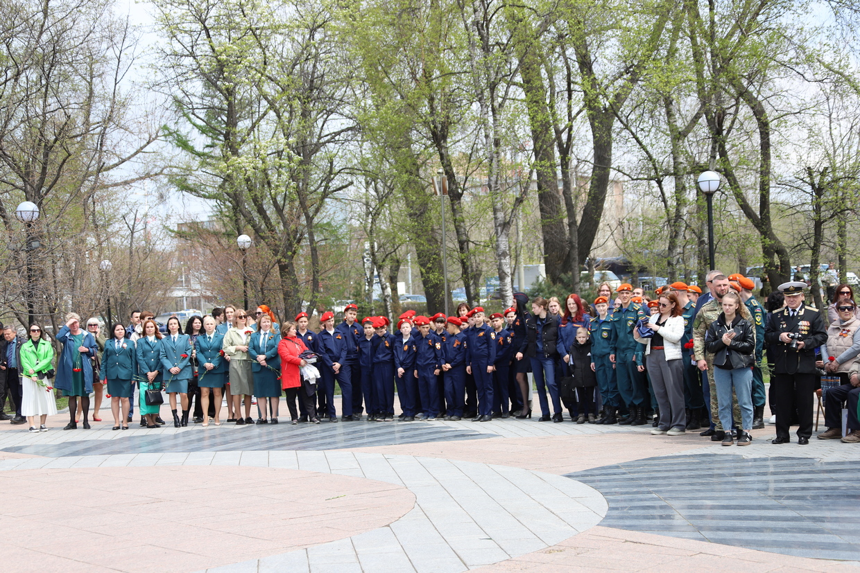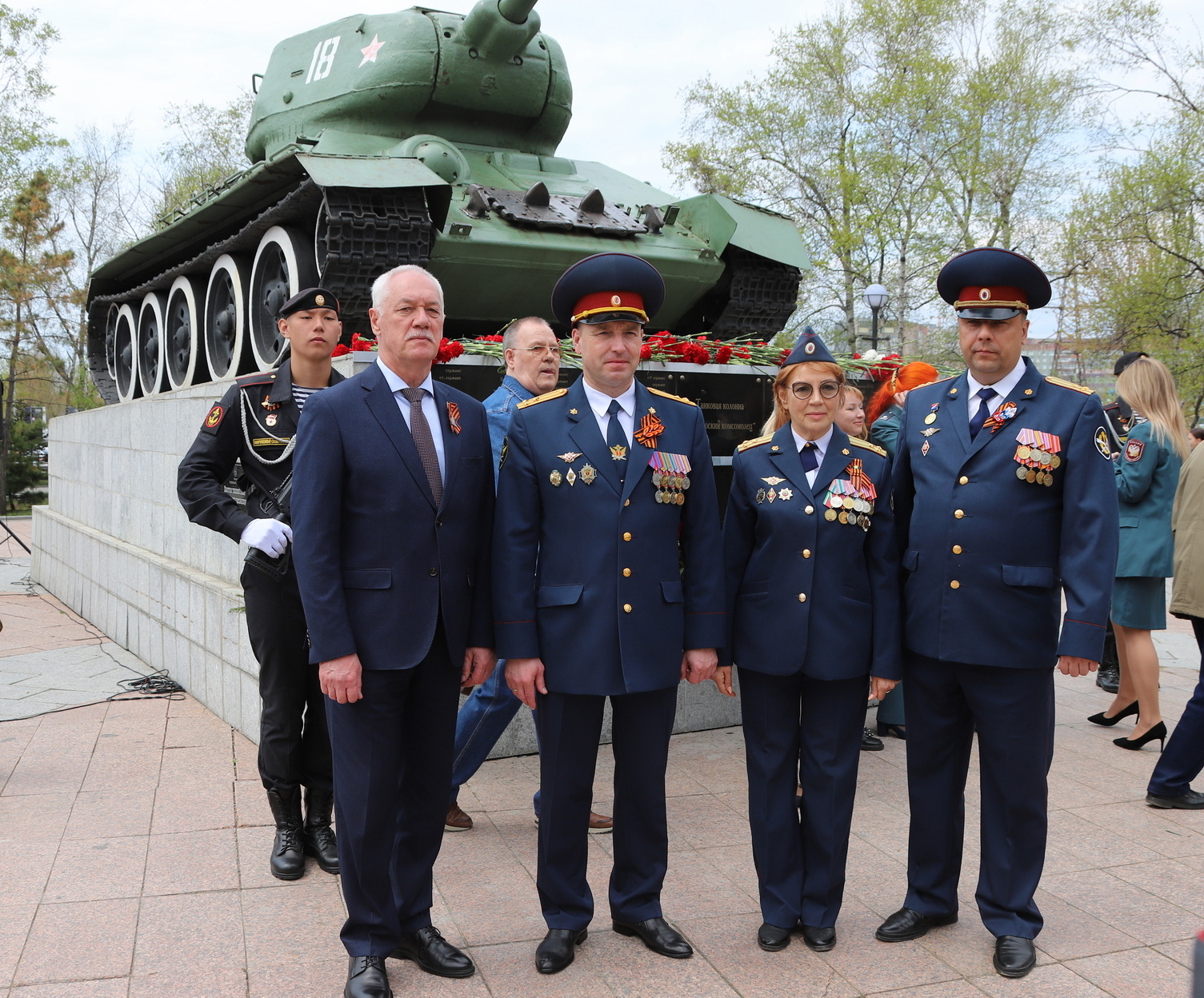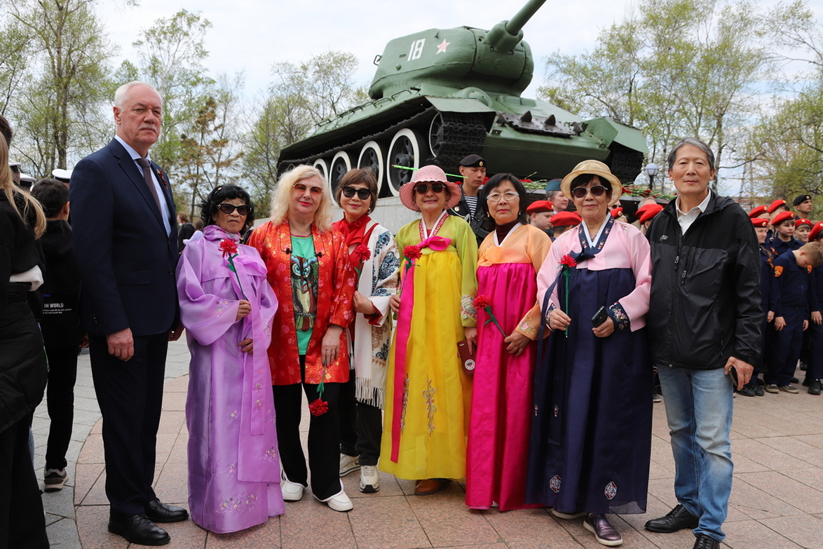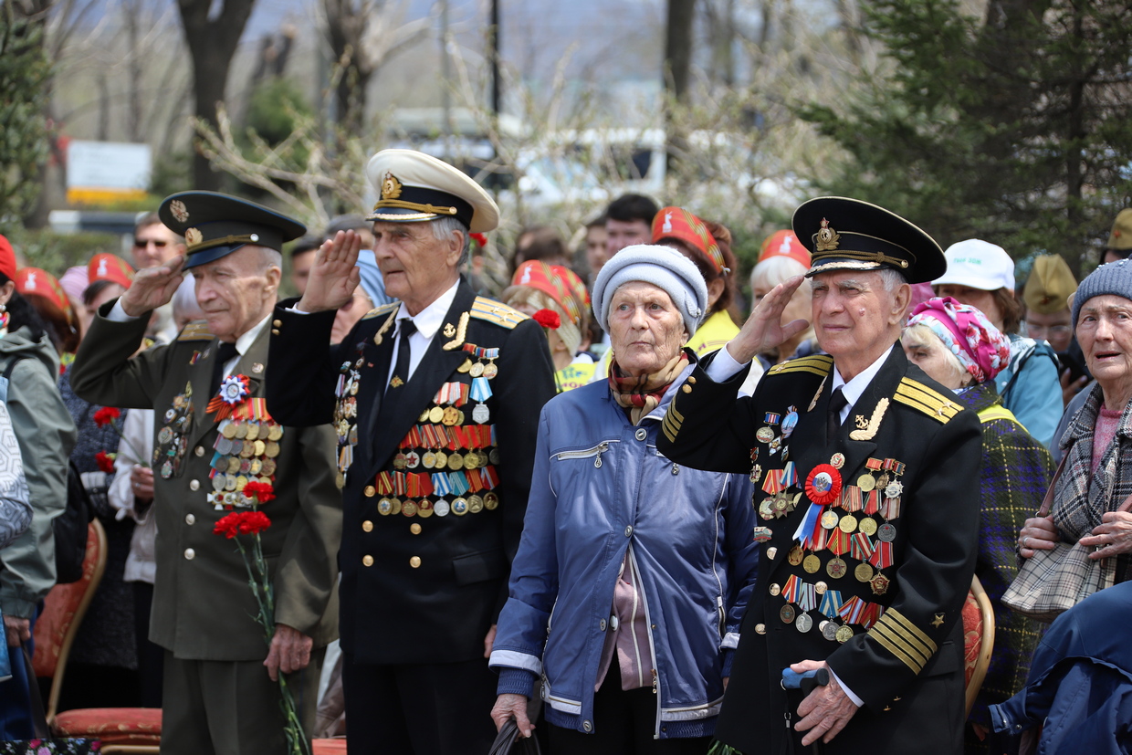 Во Владивостоке в Парке Победы у памятника танковой колонне «Приморский комсомолец» прошло торжественное мероприятие, посвященное 80-летию Победы советского народа в Великой Отечественной войне 1941-1945 годов.