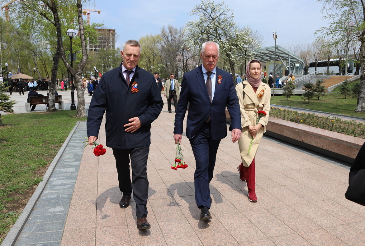 В рамках мероприятия в Парке Победы прошли акции «Сирень Победы» по высадке кустов сирени сорта «Победа», «Письмо участнику СВО», выставки вооружения времён Великой Отечественной войны от музея Управления внутренних дел по городу Владивостоку и современного оружия батальона «Тигр», мастер-классы по изготовлению сувениров, праздничный концерт.