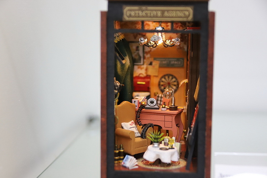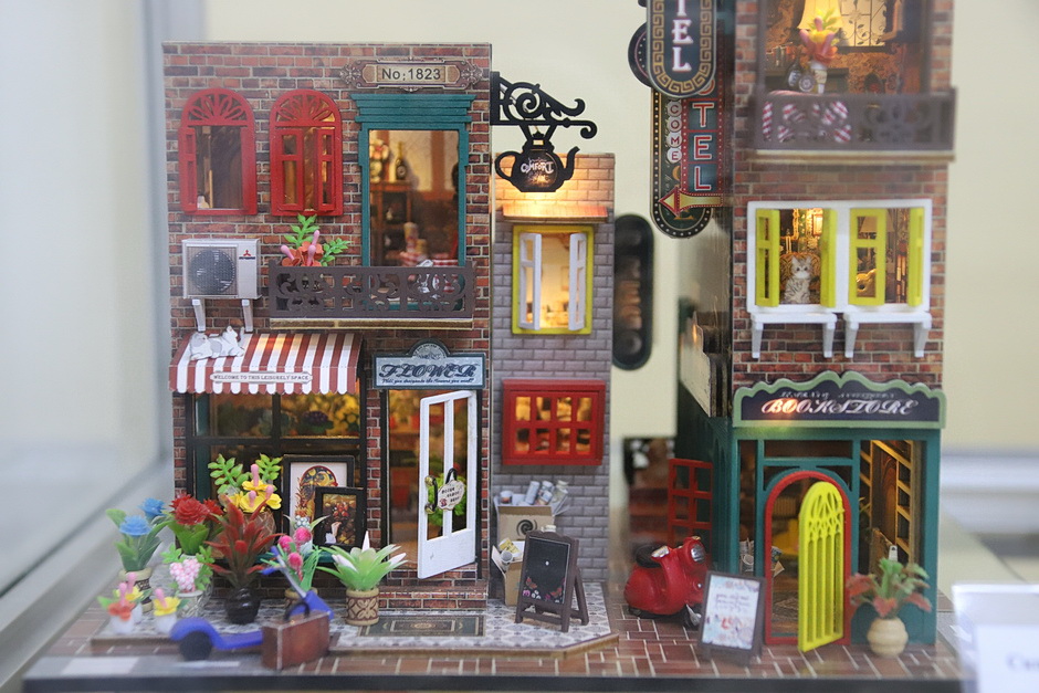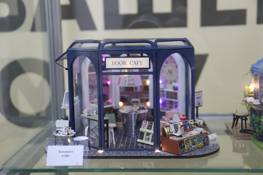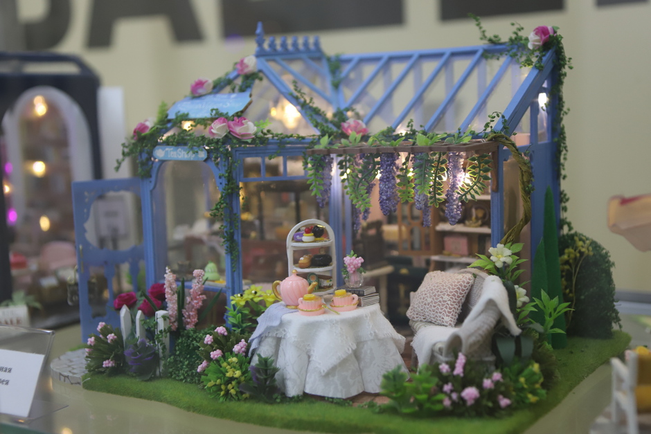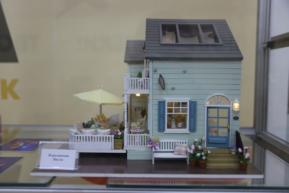 В экспозиции представлены миниатюры кукольных домиков - «румбокс» Алисы Славкиной. Наполненные крошечными бытовыми предметами модели создают детализированный интерьер гостиной, рабочего кабинета, спальни, кухни, кафе, магазина, виллы. Во всех домиках установлены светодиодные лампочки для подсветки, в некоторых - музыкальные механизмы. Таким образом каждая миниатюра может использоваться как светильник или музыкальная шкатулка. А семь картин Галины Славкиной, вышитые из бисера и собранные из алмазной мозаики, посвящены природе, животному миру.