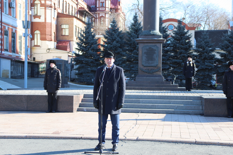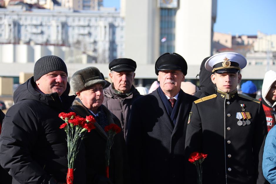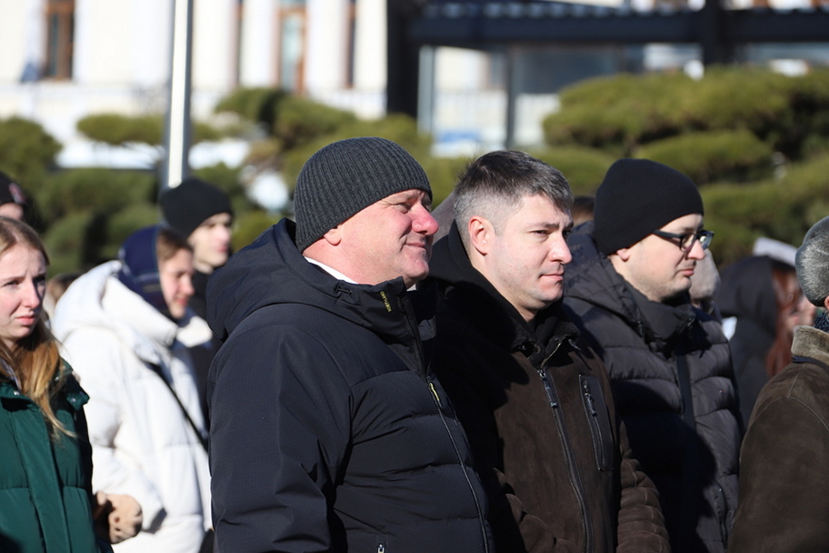 Собравшихся приветствовали председатель Думы города Владивостока Андрей Брик, заместитель главы администрации города Владивостока Дмитрий Свитайло, Герой России, участник специальной военной операции Сергей Марковский.
