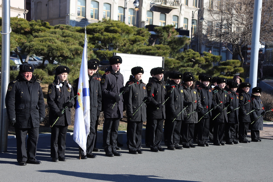 «Этот памятный день был установлен в Российской Федерации в 2007 году и приурочен ко дню учреждения в 1769 году высшей воинской награды Российской Империи - ордена Святого Великомученика и Победоносца Георгия. С Владивостоком – городом воинской славы связаны имена многих героев, которые за ратные и трудовые подвиги удостоены высших государственных наград. Их именами названы улицы, им установлены памятники, посвящены книги, фильмы. Сегодня мы отдаем дань памяти и уважения героям Отечества всех поколений: Героям Советского Союза, Героям Российской Федерации, кавалерам ордена Святого Георгия и ордена Славы. Мы выражаем глубокую благодарность нашим современникам, кто сегодня мужественно защищает национальные интересы России, укрепляет обороноспособность нашего государства, борется с нацизмом в специальной военной операции. Эти люди - пример самоотверженного и преданного служения Отечеству», - отметил в своем выступлении председатель Думы города Владивостока Андрей Брик.