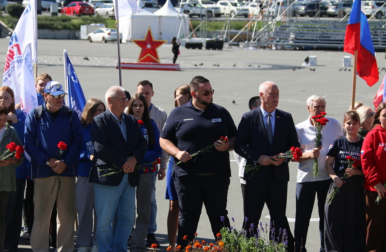 Торжественное мероприятие, посвященное Дню воссоединения Донецкой Народной Республики, Луганской Народной Республики, Запорожской и Херсонской областей с Российской Федерацией, состоялось на центральной площади Владивостока у стелы «Город воинской славы».