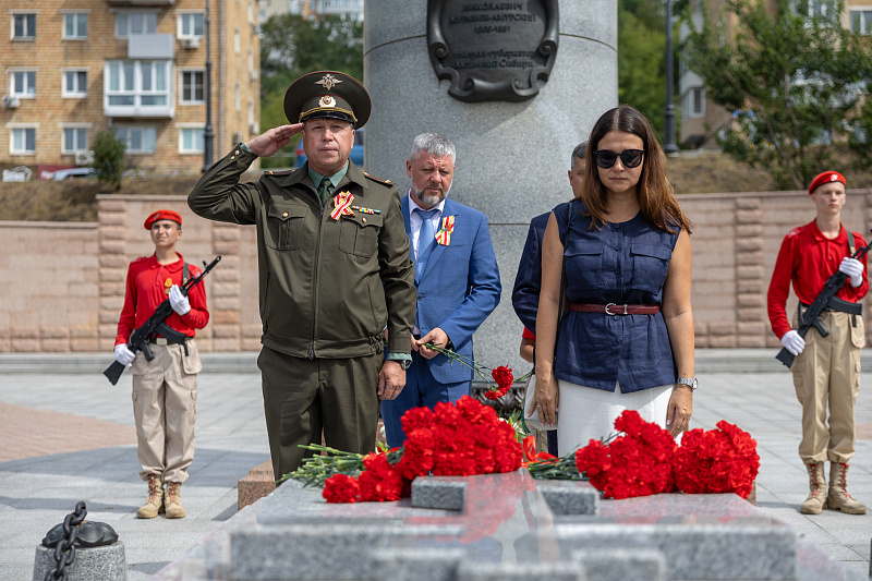 На торжественном мероприятии собравшиеся возложили цветы к могиле генерал-губернатора Восточной Сибири графа Н.Н. Муравьева-Амурского.