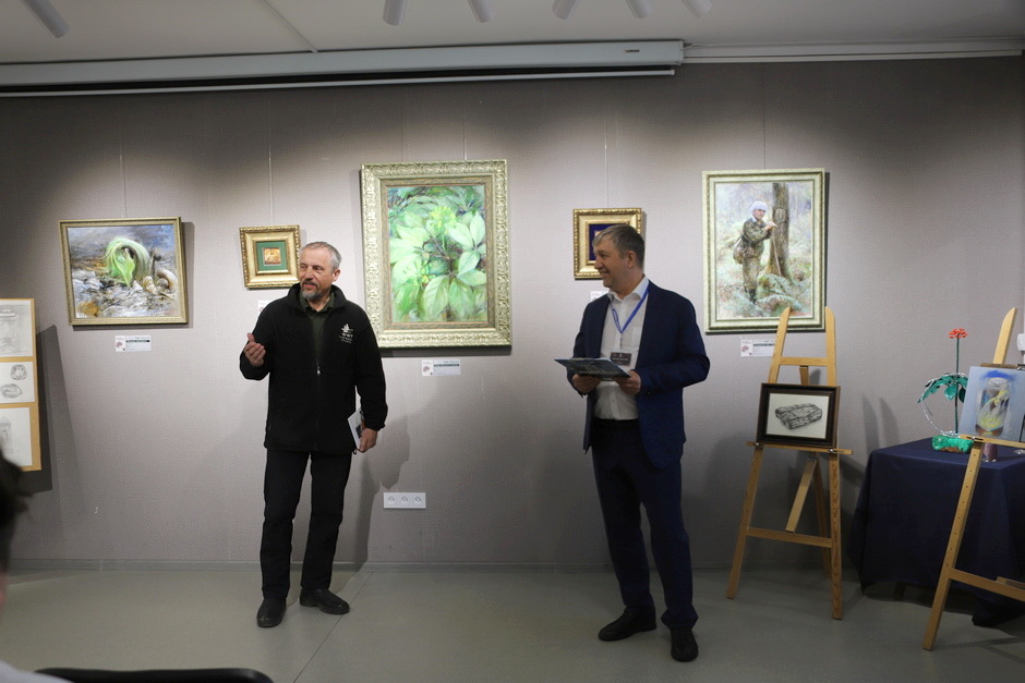В заключении мероприятия член совета Приморского отделения Профессионального Союза художников России Алексей Панфилов и директор ММВК «Достояние» Александр Гетманов провели для собравшихся экскурсию, в ходе которой рассказали о каждой представленной в экспозиции картине.