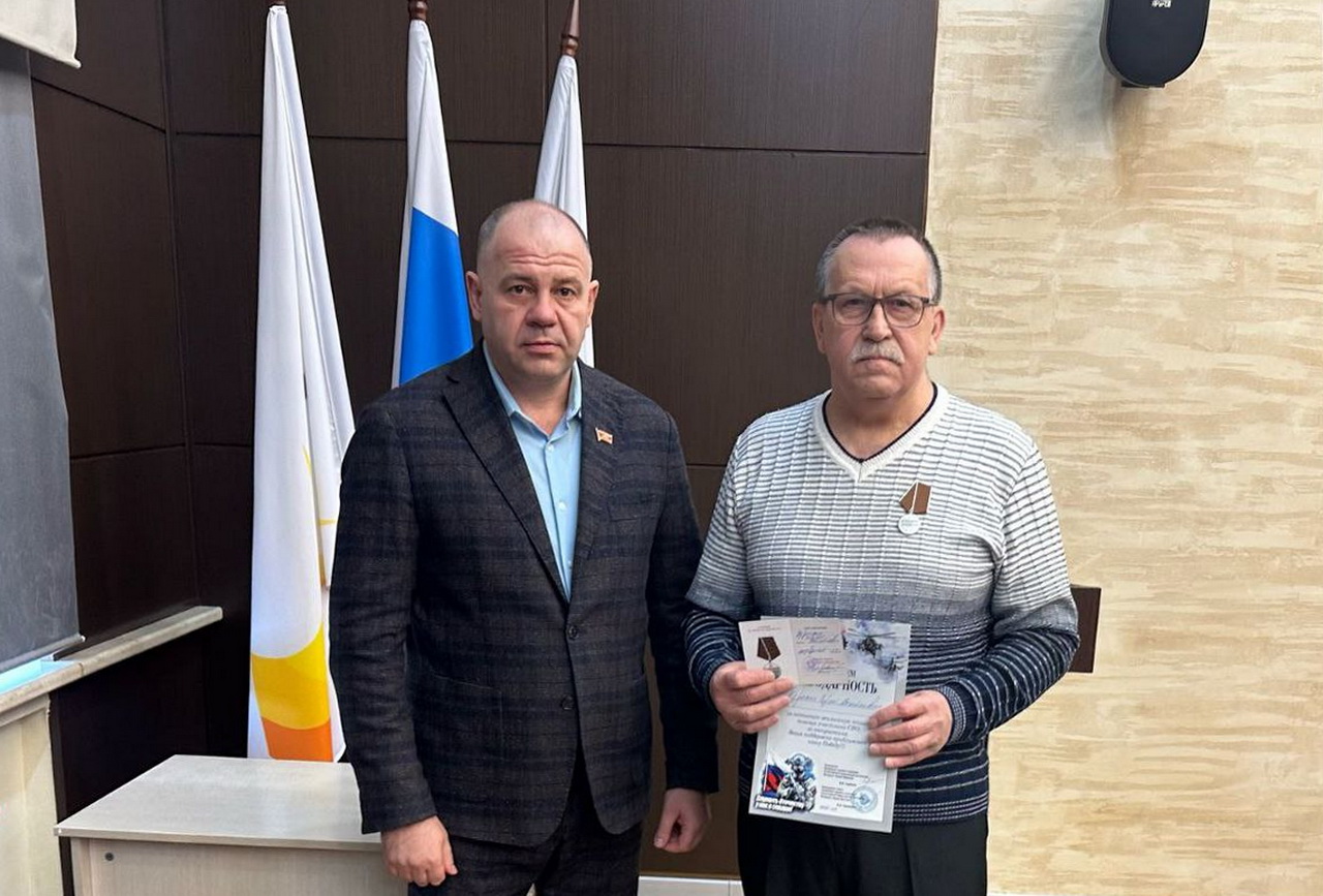 Депутат Думы города Владивостока Виктор Тарабарин вручил награды работников группы компаний Дальневосточного центра судостроения и судоремонта за активную поддержку бойцов, участвующих в специальной военной операции.