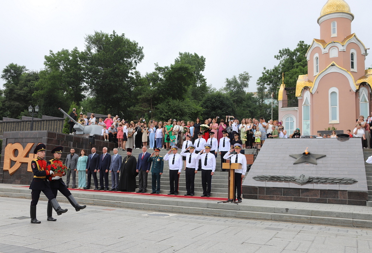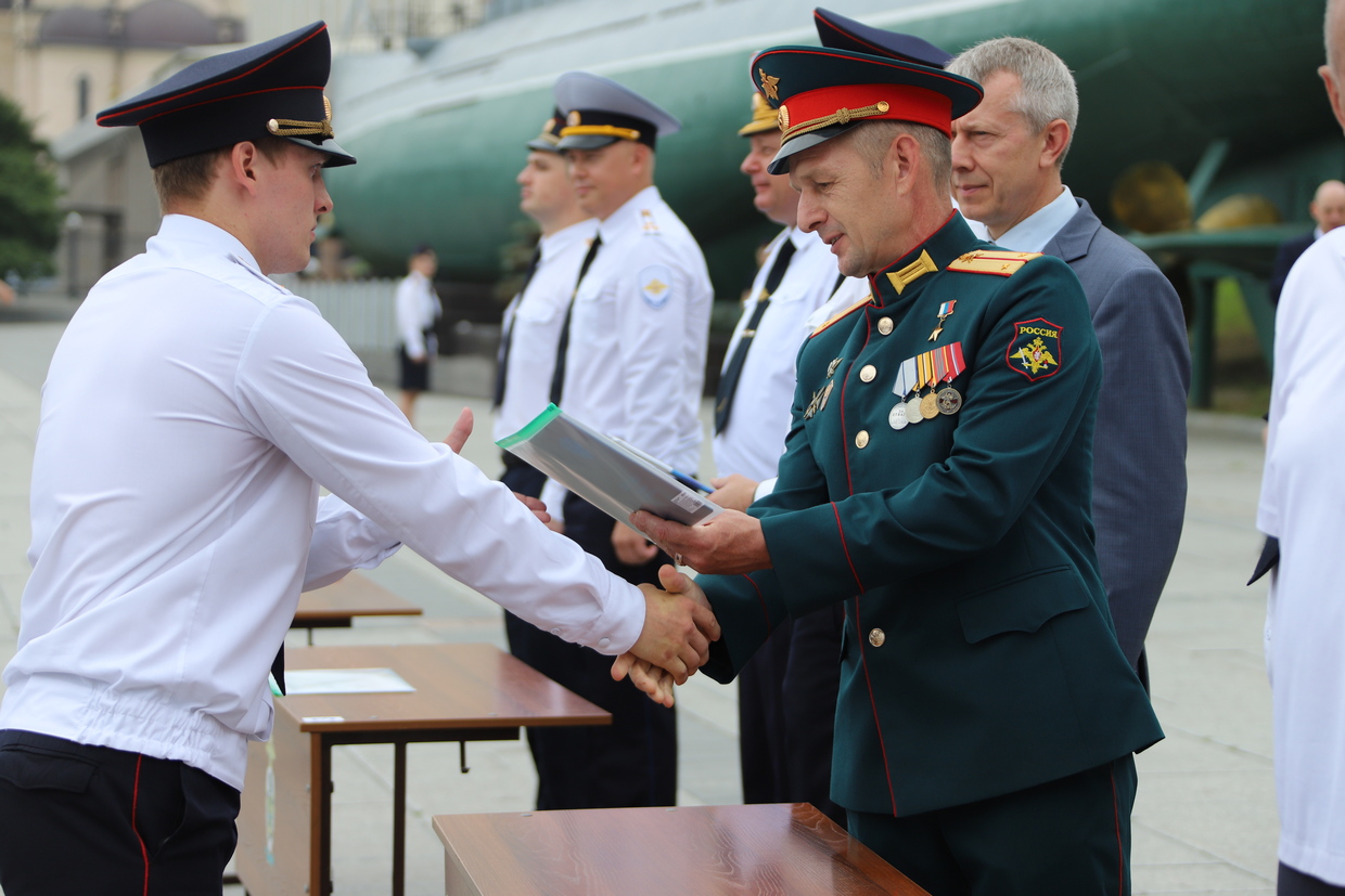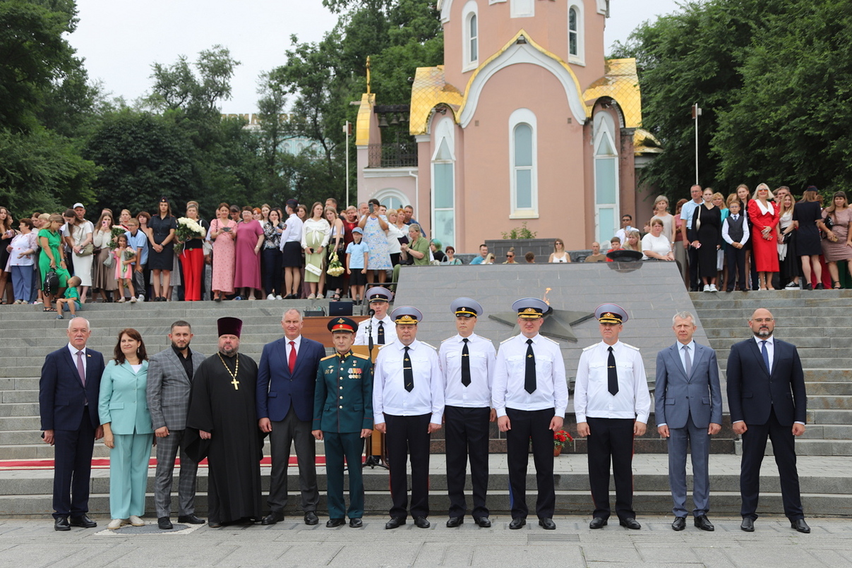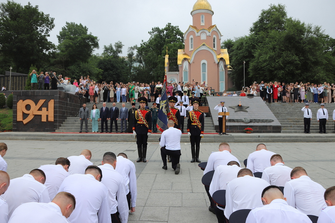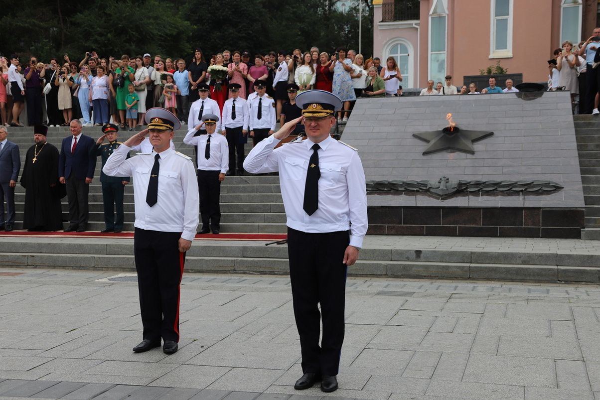 В торжественной церемонии выпуска слушателей пятого курса очной формы обучения Владивостокского филиала ФГКОУ ВО «ДВЮИ МВД России имени И.Ф. Шилова», которая состоялась у мемориального комплекса «Боевая слава Тихоокеанского флота» 1 августа, приняли участие руководители органов государственной власти и местного самоуправления, представители Владивостокской епархии Русской Православной Церкви, общественных организаций, ветераны, родственники выпускников.