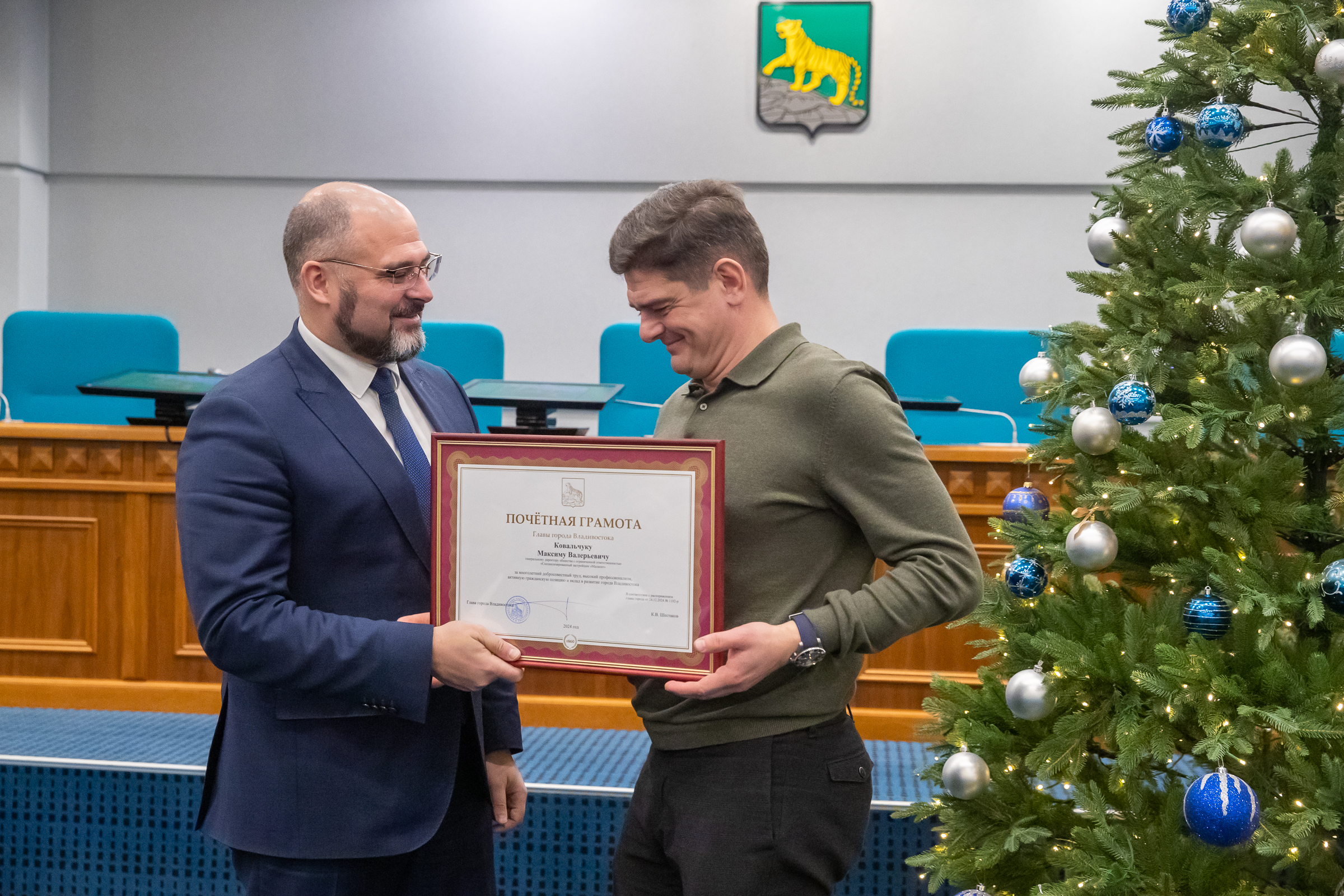 «Благодарю каждого из вас за вклад в развитие любимого города, – обратился к участникам собрания Константин Шестаков. – Спасибо всем, кто в 2024 году не единожды нас поддержал. Только вместе у нас получаются хорошие, правильные дела. А в плюсе – всегда человек, житель города Владивостока. Особые слова поздравлений адресую ребятам – участникам специальной военной операции. Низкий вам поклон за мужество и самоотверженность. Только благодаря вам и вашей службе у нашей страны есть будущее».