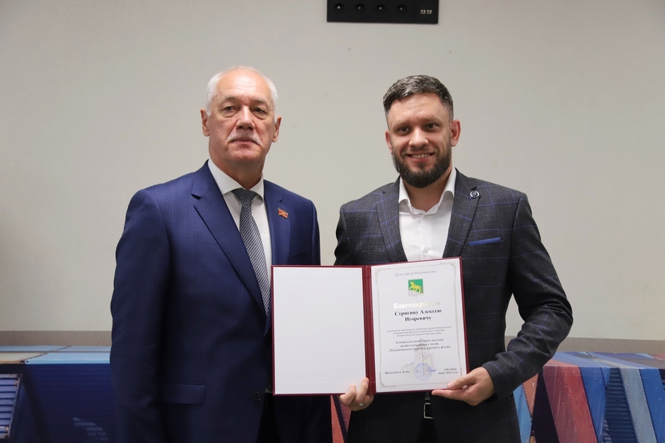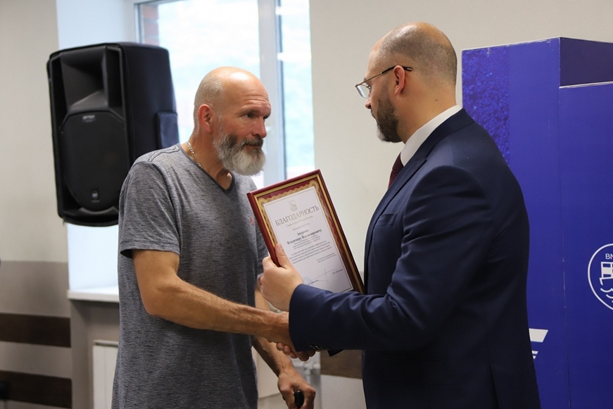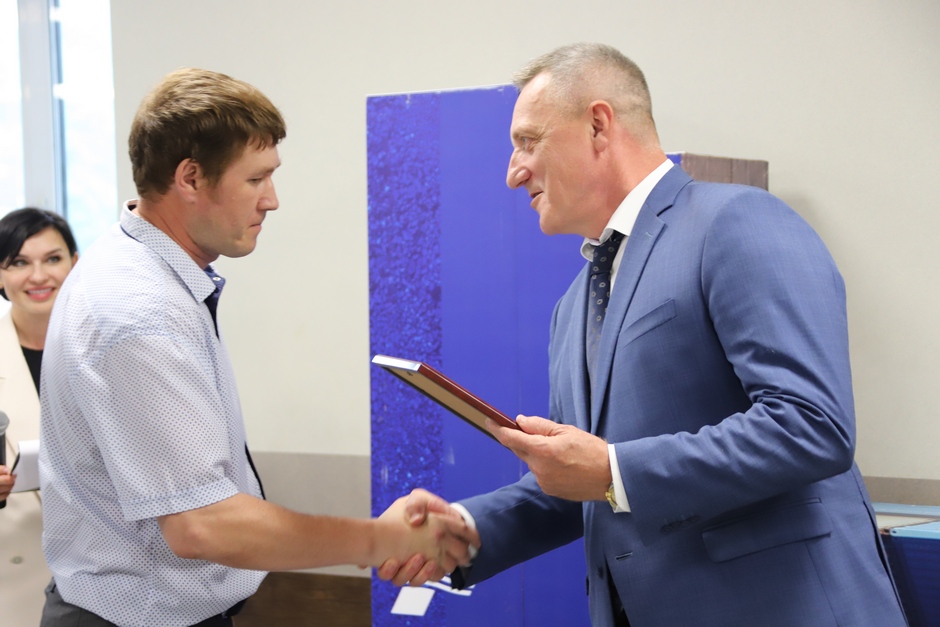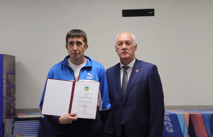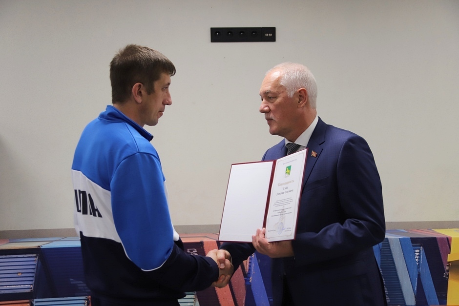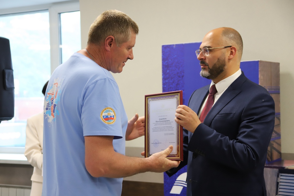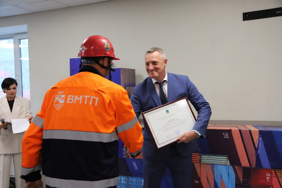 На мероприятии председатель Думы вручил Благодарности за высокие трудовые достижения работникам ВМТП: слесарю 5 разряда Службы крановой механизации Дмитрию Глобе, главному экономисту Финансового департамента Роману Мельникову, заместителю начальника отдела режима Управления транспортной безопасности Александру Плужнику.