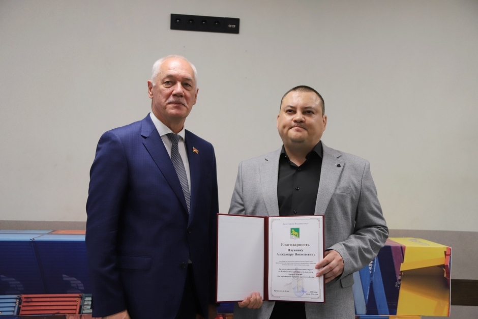 За большой личный вклад в решение производственных задач, многолетнюю добросовестную работу Почетной грамотой Думы города Владивостока награждены сменный механик буксира «Бархат–1» Сергей Бровченко и главный бухгалтер Наталья Чернова; Благодарностями Думы - старший помощник капитана ледокола «Москва» Вадим Баишев и главный специалист по закупкам службы коммерческой эксплуатации флота Наталья Нестерова.
