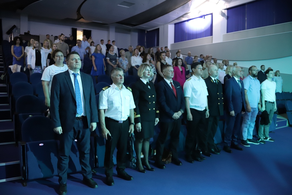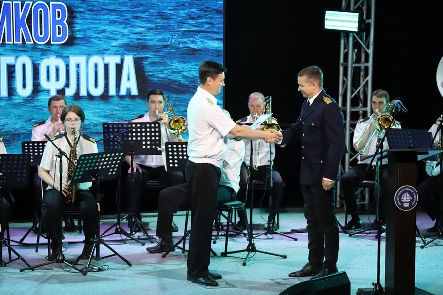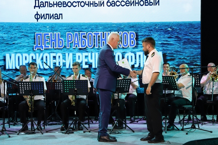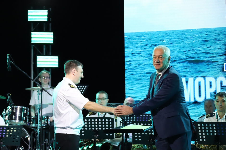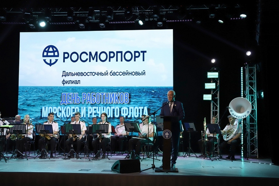 На торжественном мероприятии, состоявшемся в концертном зале МГУ им. адм. Г.И. Невельского, председатель Думы города Владивостока Андрей Брик поздравил с профессиональным праздником трудовой коллектив Росморпорта.