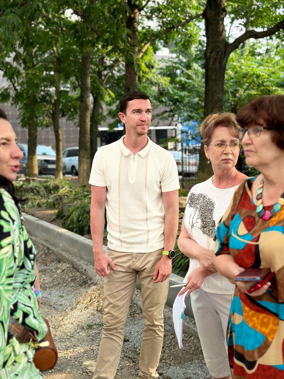 Жители домов №№ 2, 4 и 6 по ул. Жигура обсудили с депутатом и представителями подрядчика ход строительства прогулочной парковой аллеи, выполняемой в рамках национального проекта «Жилье и городская среда», а также сквера с тигром, который строится по проекту инициативного бюджетирования «Твой проект» рядом с домом по ул. Жигура, 2.