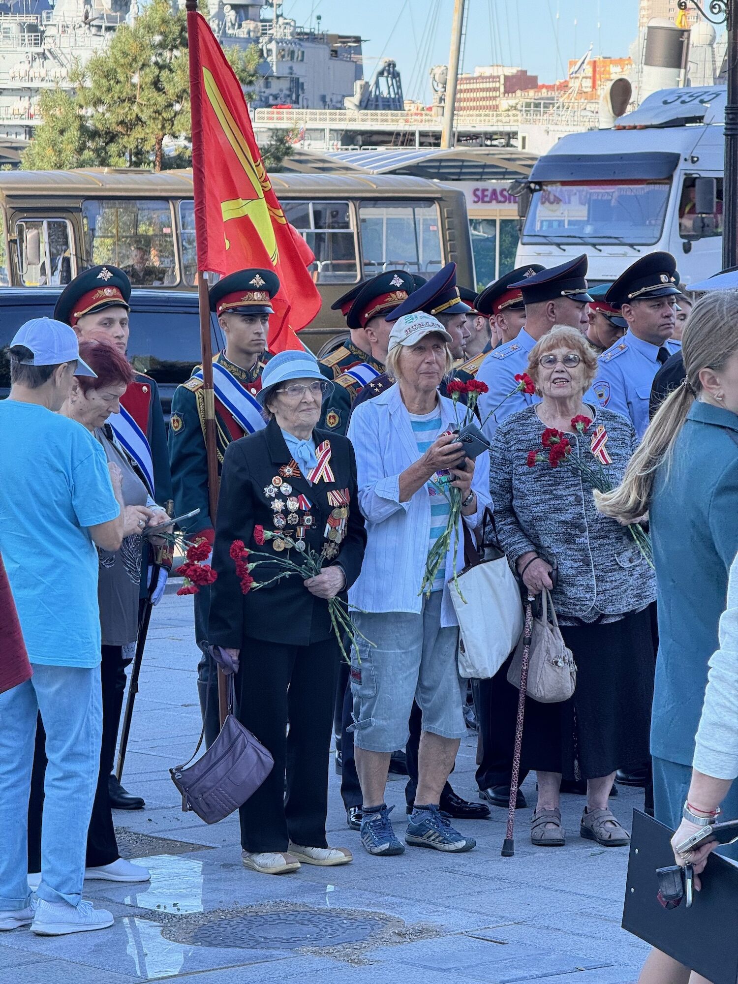 В мероприятии приняли участие представители органов государственной власти и местного самоуправления, ветеранских и молодежных общественных организаций, жители и гости города. Собравшиеся минутой молчания почтили память павших во Второй мировой войне и возложили цветы к Вечному огню мемориального комплекса «Боевая слава Тихоокеанского флота».