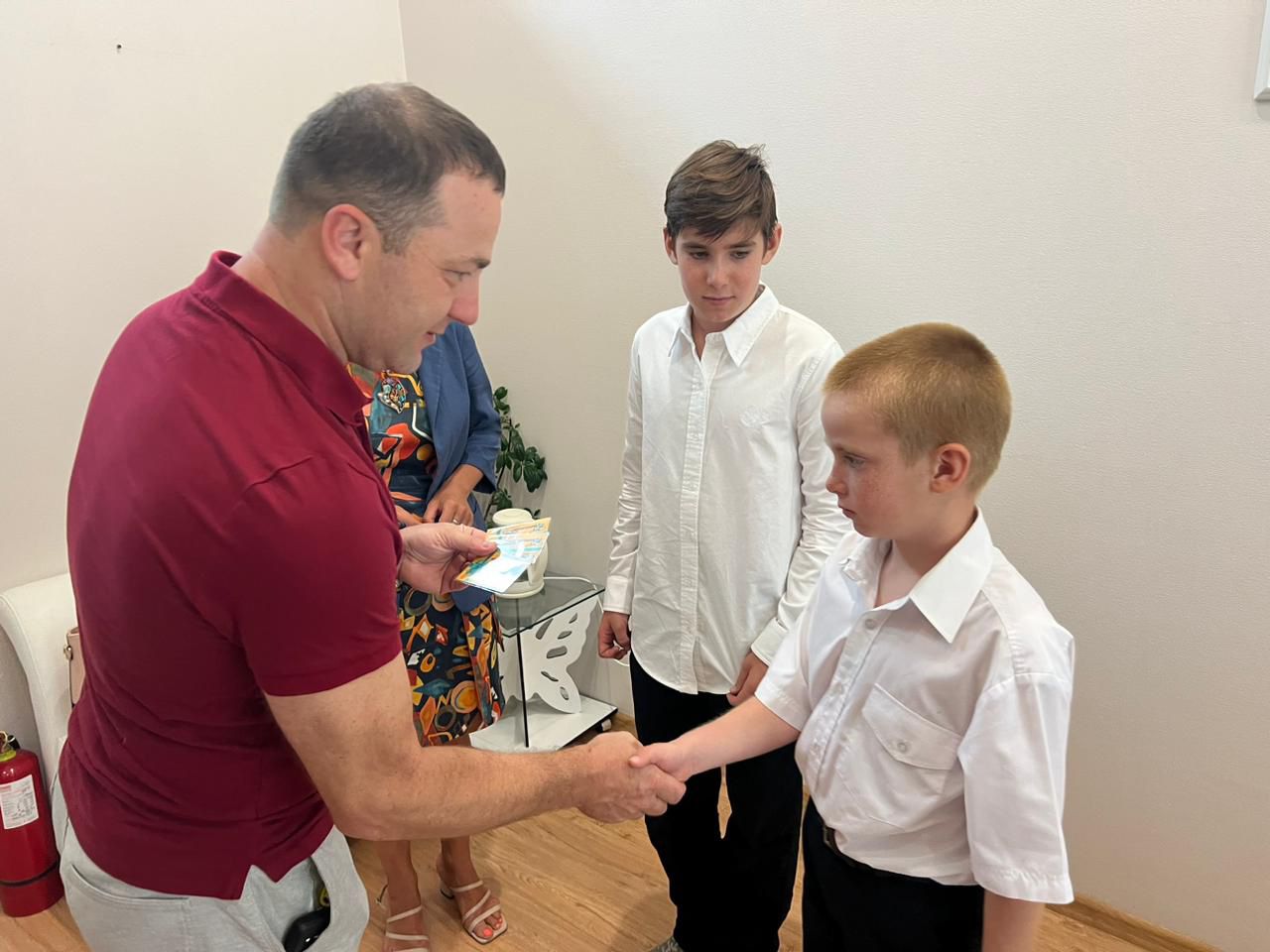 Депутат Думы города Владивостока Денис Русинов всегда принимает активное участие в благотворительной акции. В прошлом году вручил детям портфели с канцелярией и сладким подарком. В этом году - сертификаты в магазин на приобретение канцелярии многодетной семье Макариных, в которой воспитываются шестеро детей, трое учатся в школе. Депутат поздравил школьников с началом учебного года.