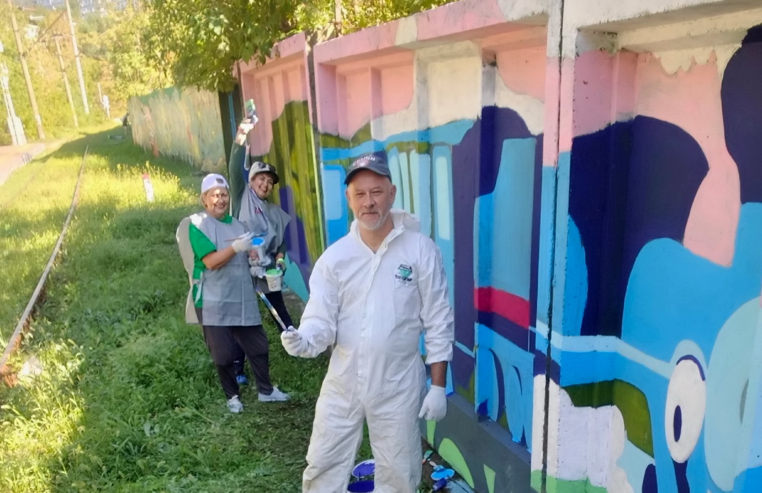 Проведены работы по окраске подпорных стен в районе Океанского проспекта, 140, Красного Знамени, 101, на станции «Военное шоссе». Проект реализуется при поддержке Департамента внутренней политики Правительства Приморского края, АНО «Инверика», при участии студентов направления «Дизайн архитектурной среды» ДВФУ и сообщества «East Architect».
