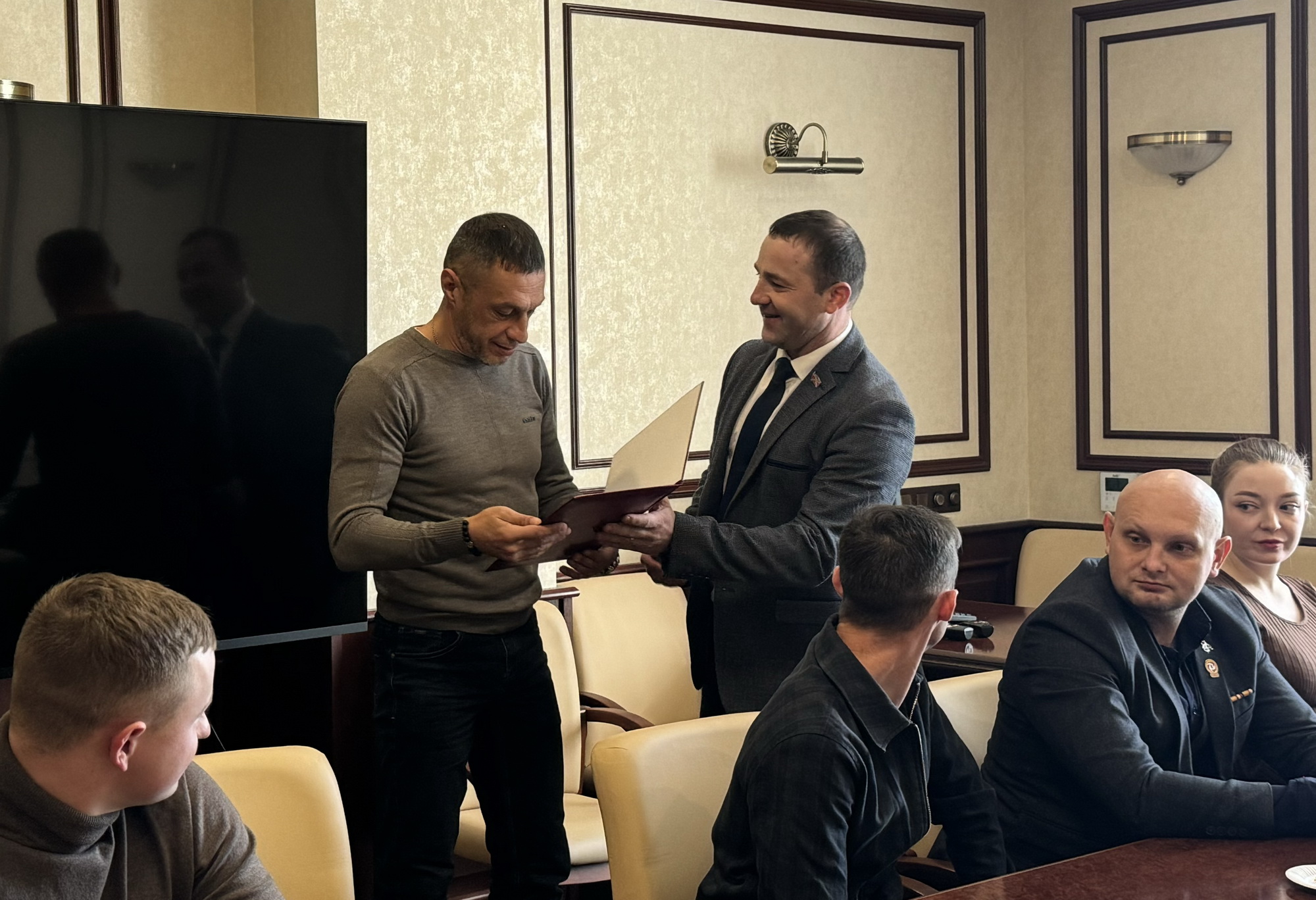 Депутат Денис Русинов провел встречу с участниками СВО и вручил Благодарности Думы города Владивостока