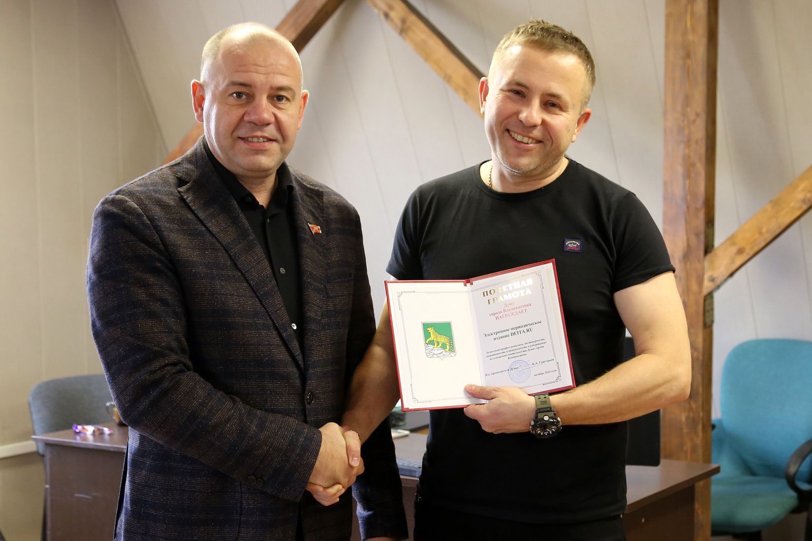 Депутат вручил журналистскому коллективу Почетную грамоту Думы города Владивостока. За высокий профессионализм и плодотворное сотрудничество с депутатским корпусом Благодарностью Думы города Владивостока отмечена специалист по рекламе и связям с общественностью Юлия Моисеева.
