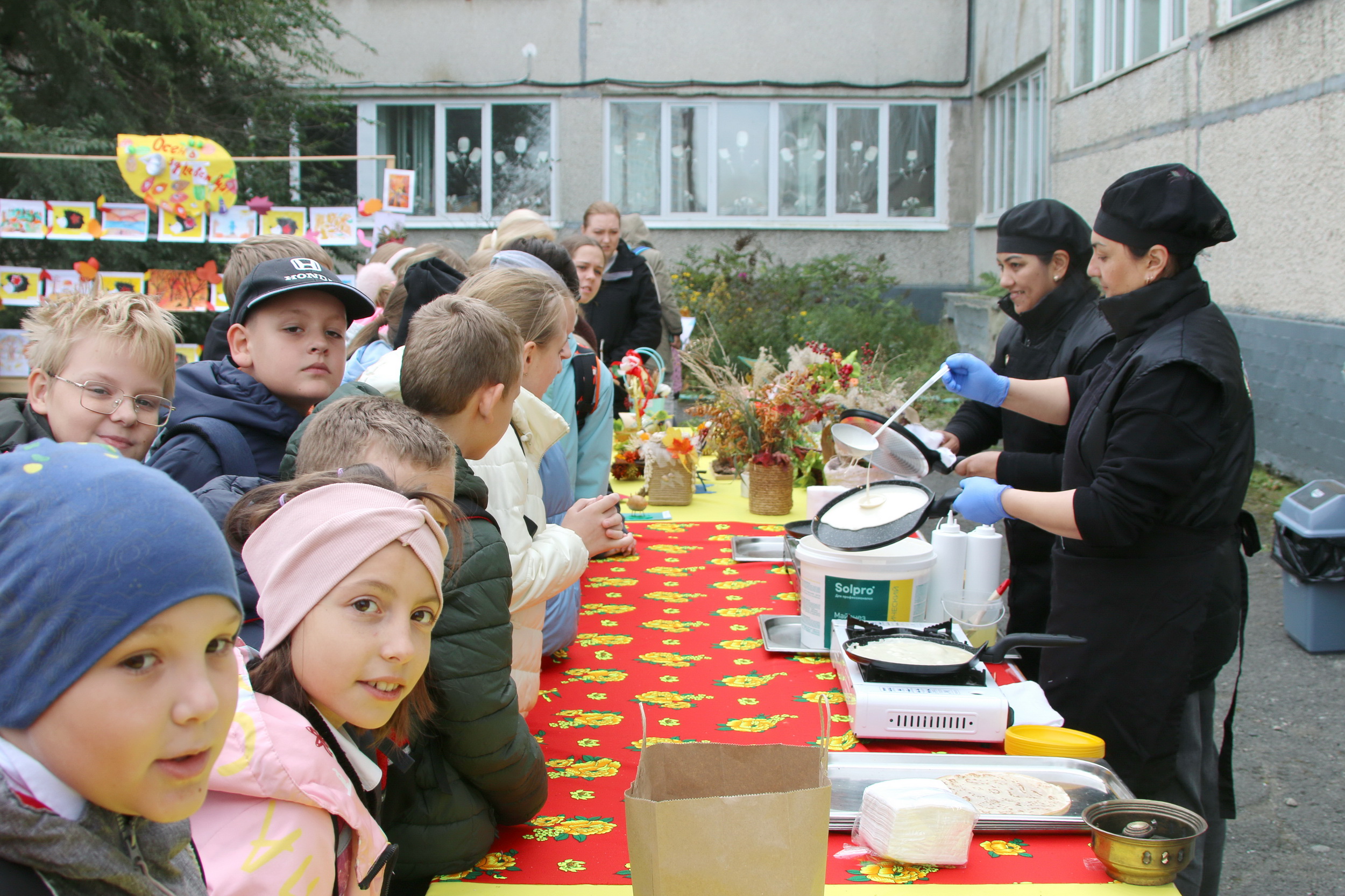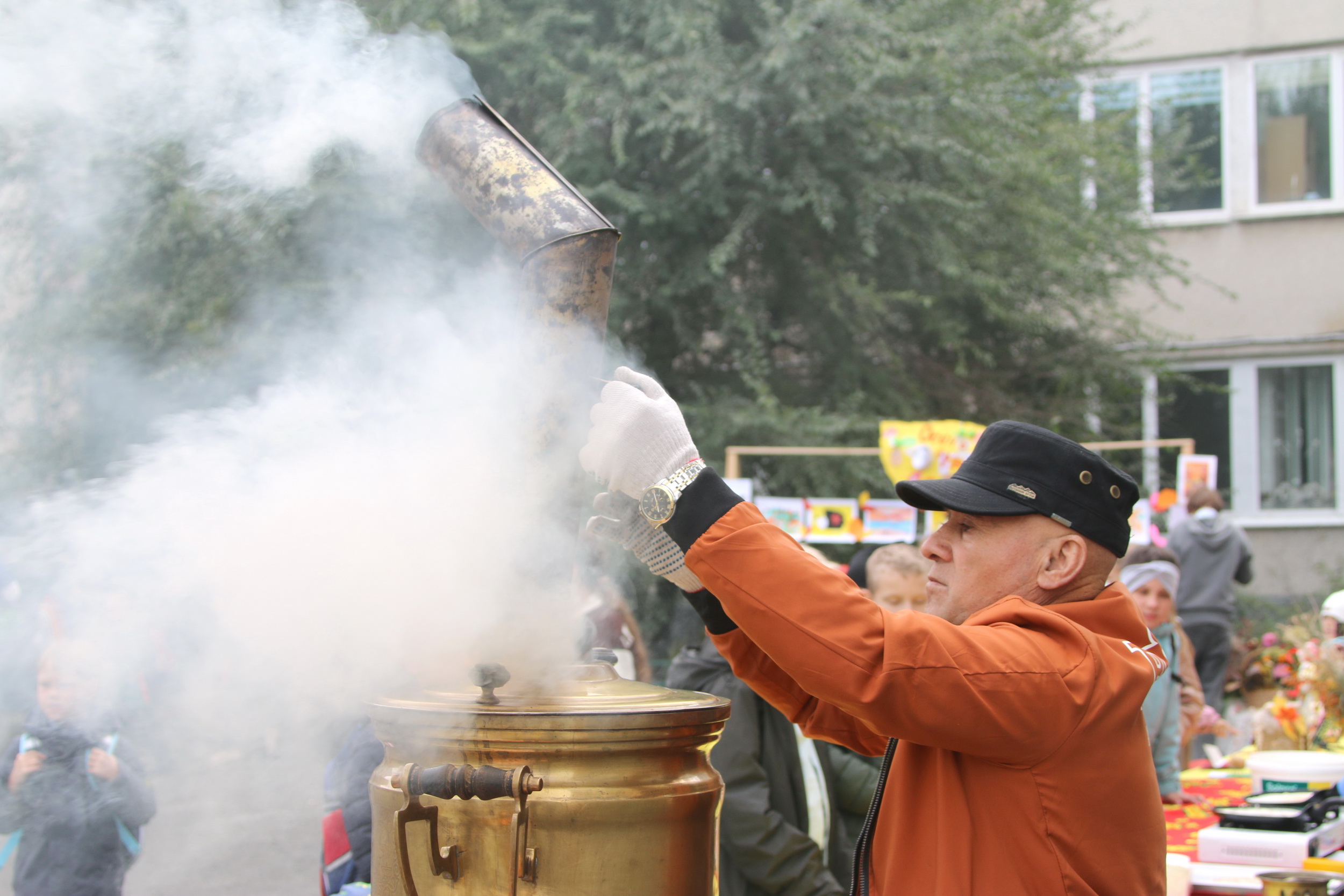 По инициативе представителя Общественного совета Думы города Владивостока, президента ММВК «Достояние» Александра Гетманова на пришкольной территории был установлен настоящий дровяной самовар, организовано чаепитие с блинами и пряниками.