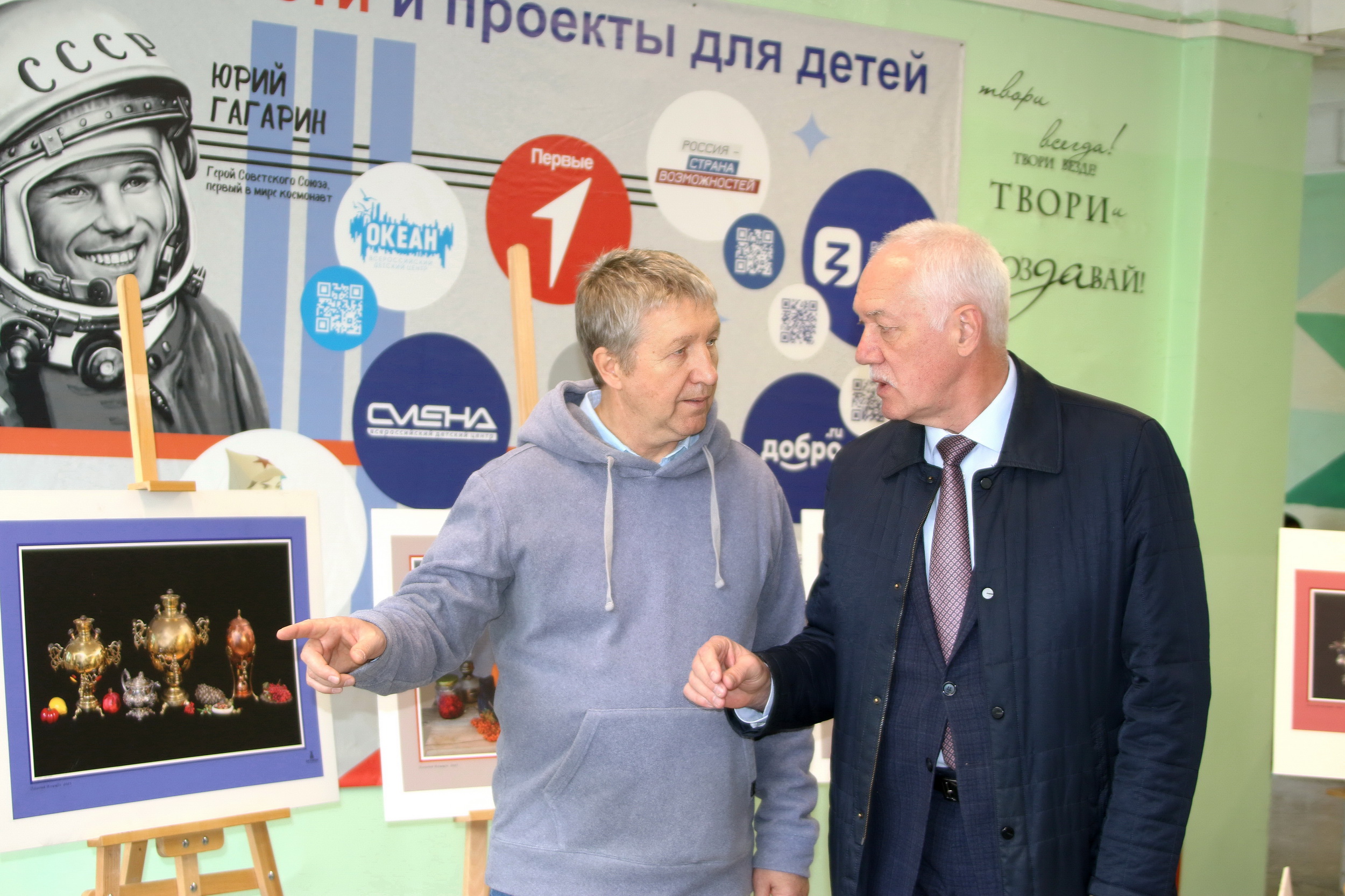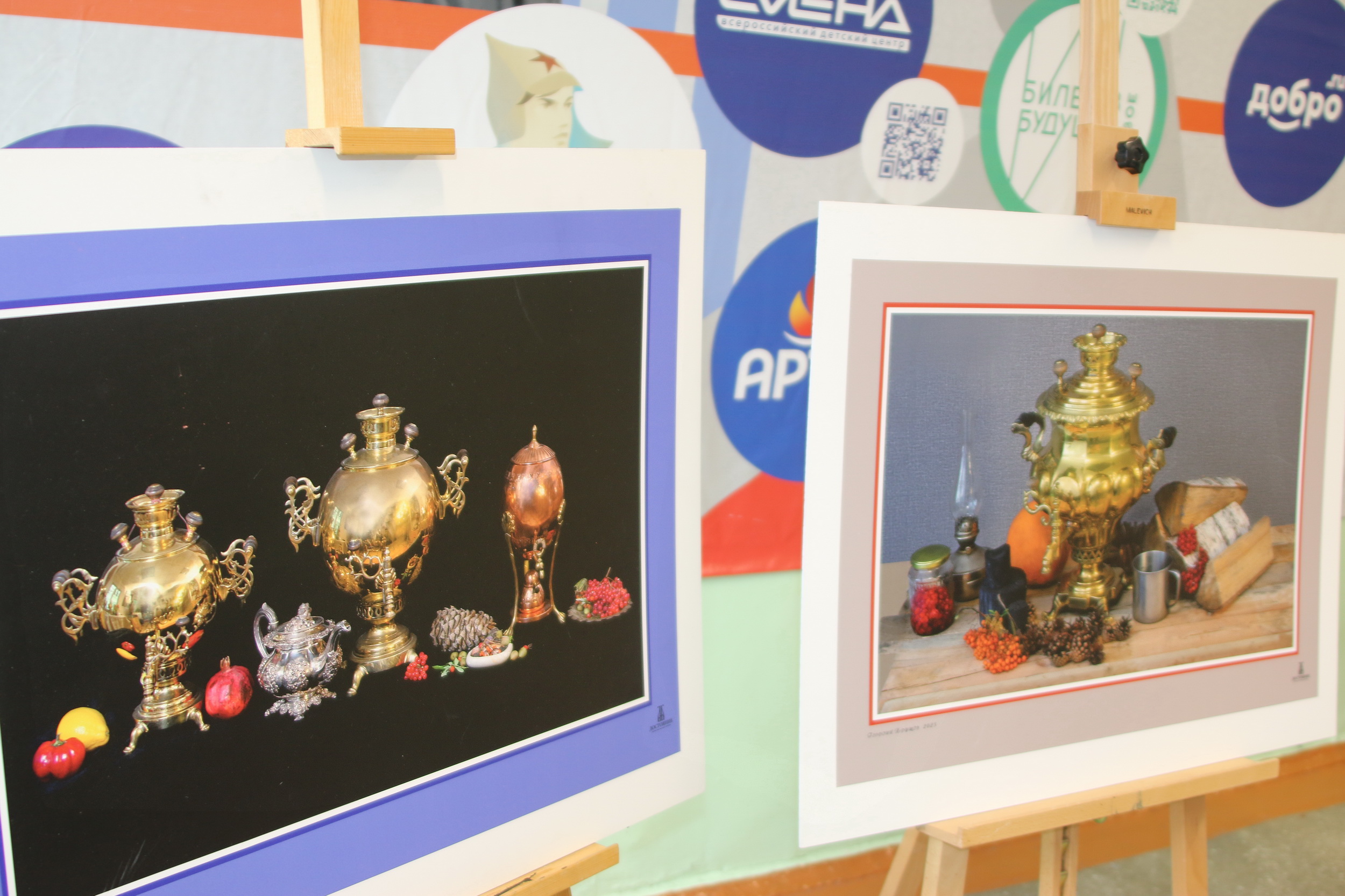 Почетных гостей встретили хлебом-солью, представили тематический спектакль с участием сказочных персонажей, ознакомили с выставкой детского творчества, посвященной дарам осени. При поддержке советника председателя Думы города Сергея Крылова специалисты международного музейно-выставочного комплекса «Достояние» организовали для школьников фотовыставку русских самоваров.