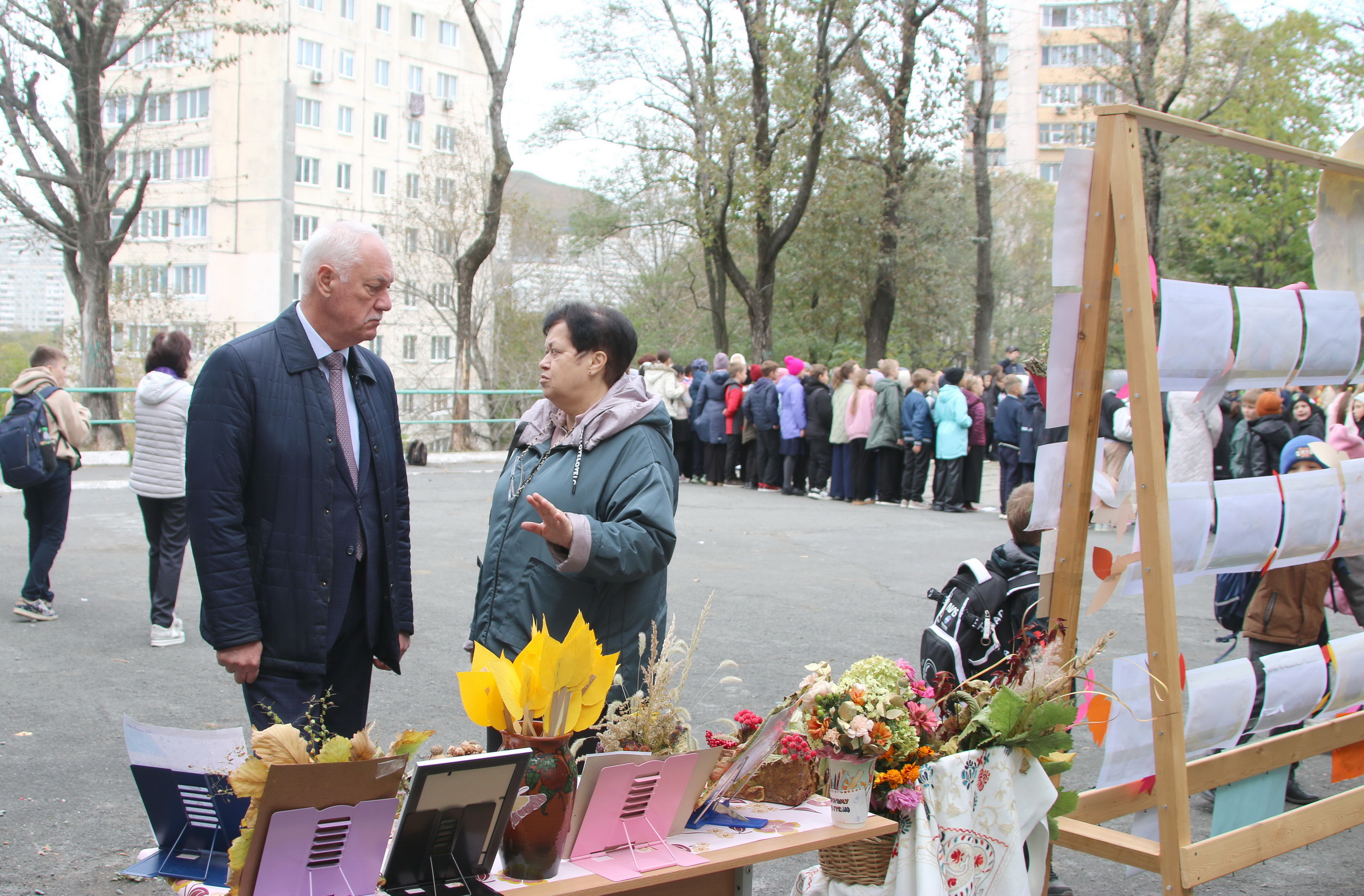 Председатель Думы города Владивостока Андрей Брик и участник Общественного совета Думы, президент ММВК «Достояние» Александр Гетманов поддержали проведение в средней общеобразовательной школе № 47 праздника «Золотая осень».