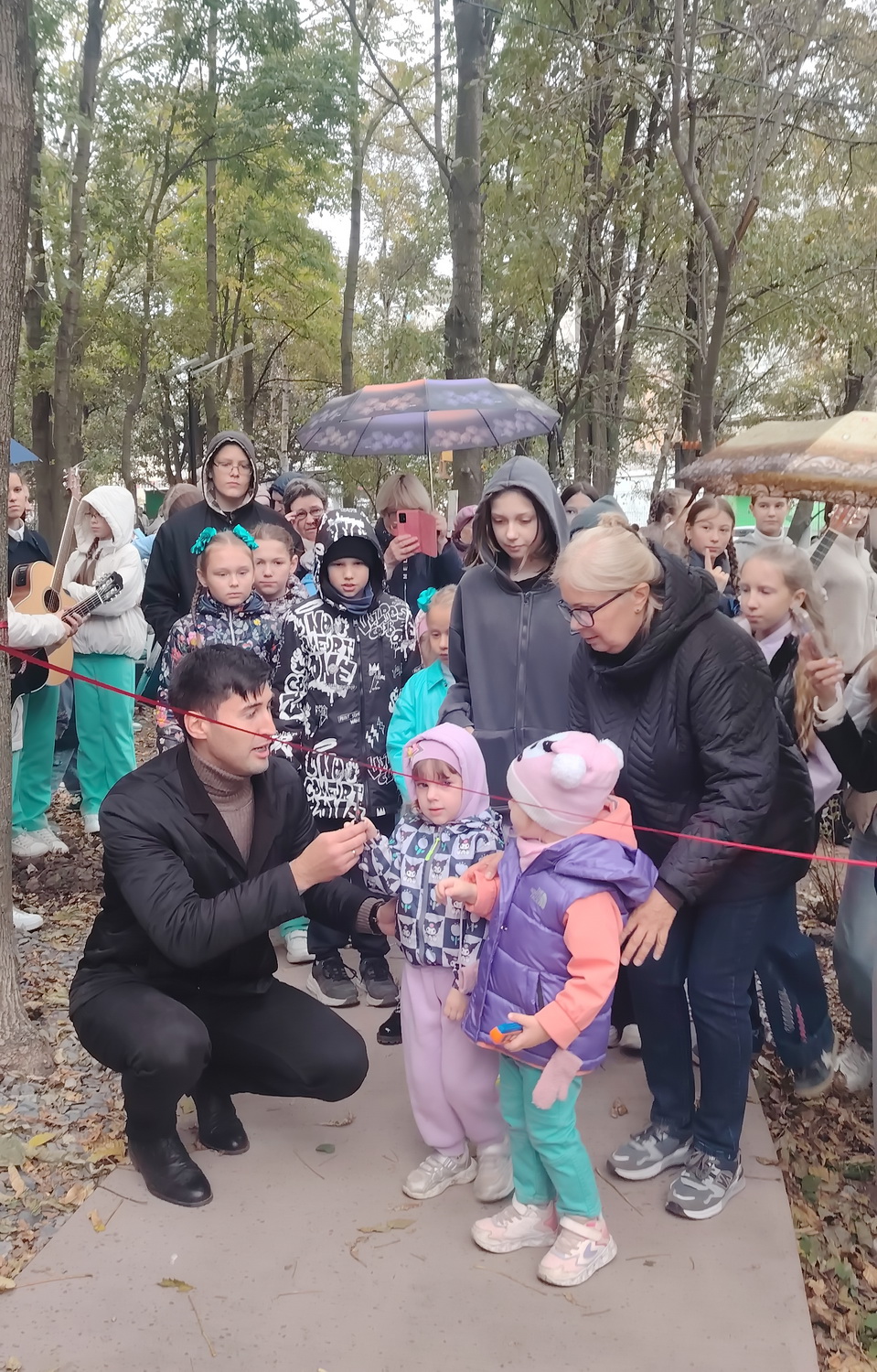 Уже через неделю, 11 октября, Александр принял участие в ярком празднике открытия сквера на ул. Жигура, организованном жителями домов 12, 14, 16 и центром развития творчества детей и юношества «Надежда», расположенном по адресу ул. Жигура, 16. Это уже второй грант, выигранный жителями этого территориального общественного самоуправления. В рамках предыдущего проекта были выполнены устройство подпорной стены и асфальтирование.