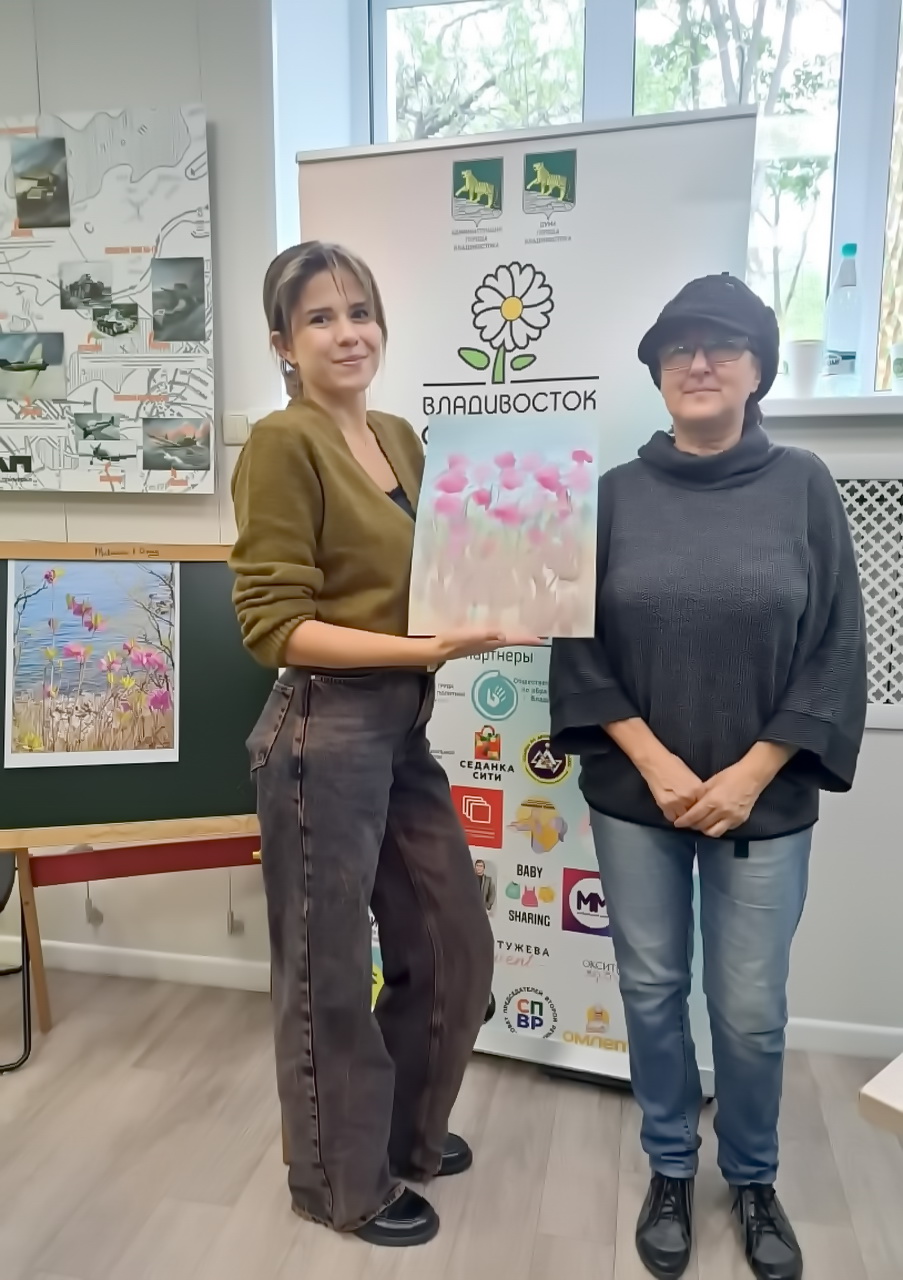 Традиционно представитель Приморского отделения Профессионального союза художников России Неля Вельма провела мастер-класс, на котором жители рисовали морской пейзаж, багульник на фоне моря.
