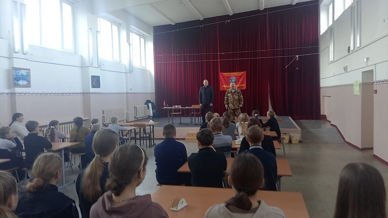 Урок был посвящен воспитанию у подрастающего поколения чувства патриотизма, гражданской ответственности и гордости за героическое прошлое и настоящее России. В ходе мероприятия школьники узнали о подвигах защитников Отечества в разные периоды истории страны. Гости рассказали о героях Великой Отечественной войны, о современниках ― военнослужащих, участвующих в СВО, чьи поступки являются продолжением славных боевых традиций.