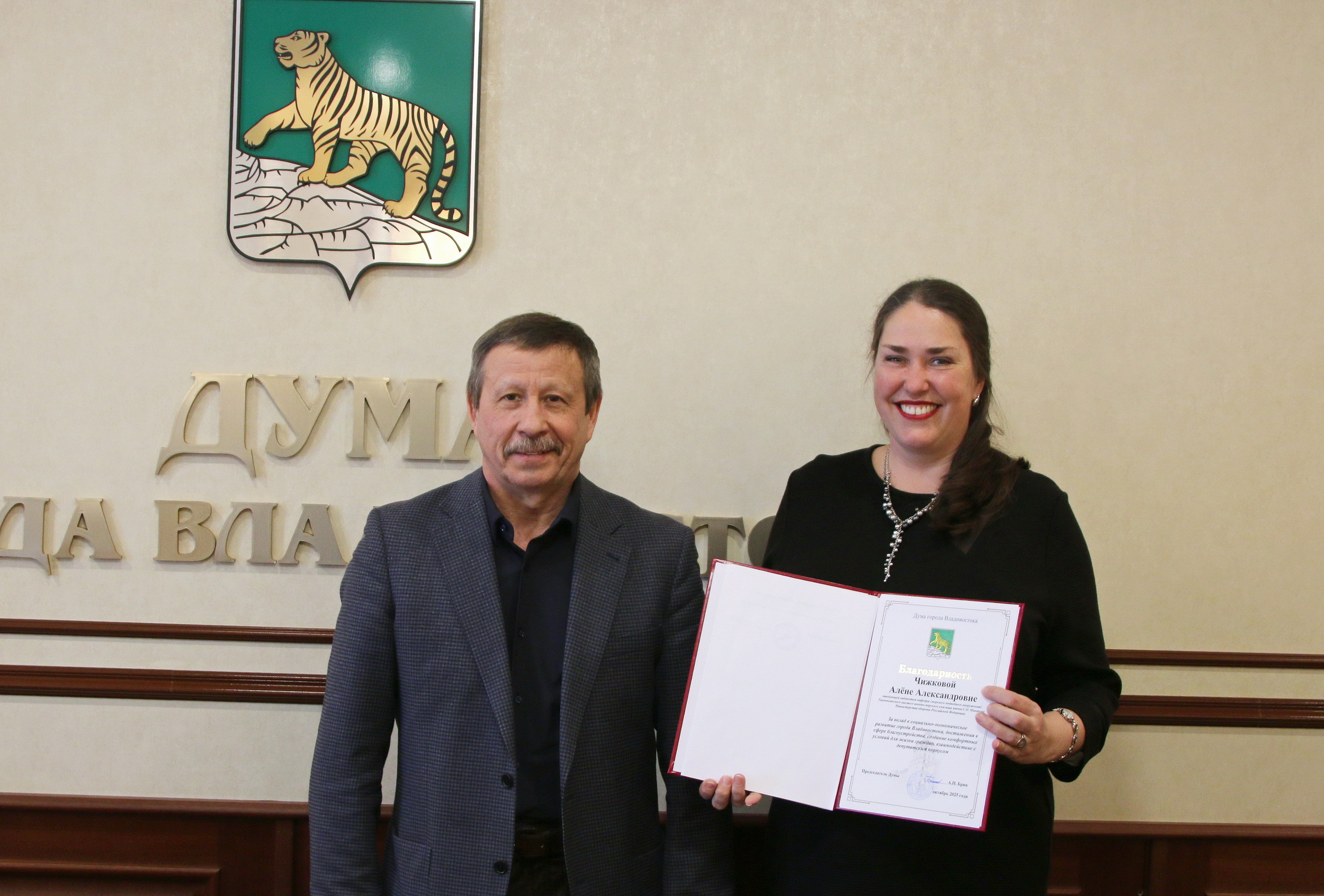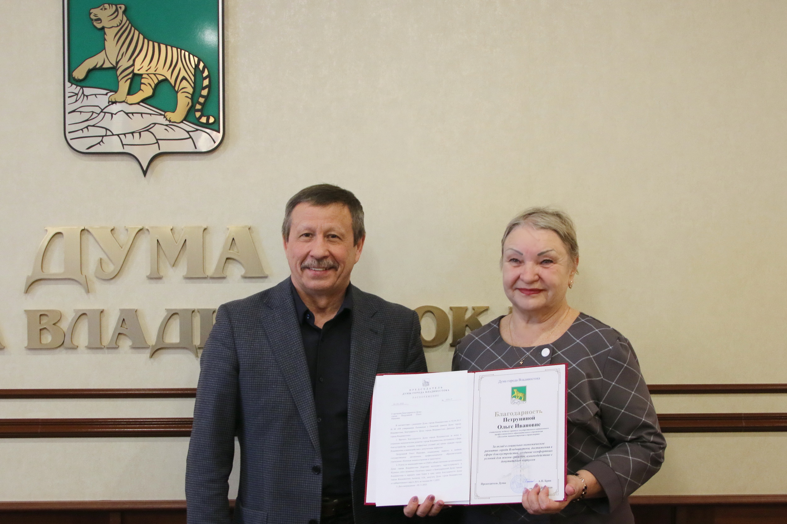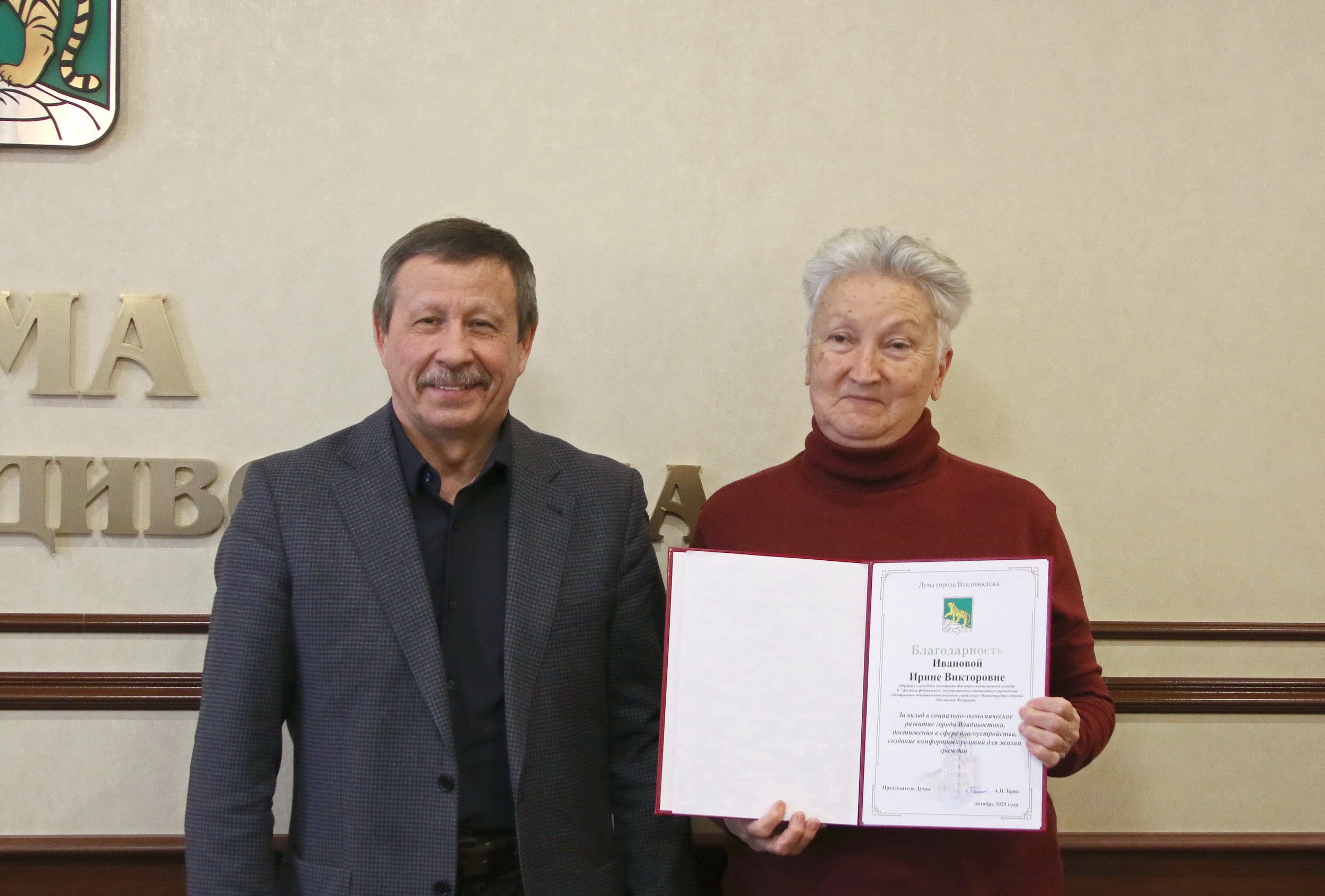 Завершилась встреча торжественным моментом: в знак благодарности за неравнодушие, активную гражданскую позицию, плодотворное сотрудничество активистам были вручены Благодарности Думы города Владивостока.