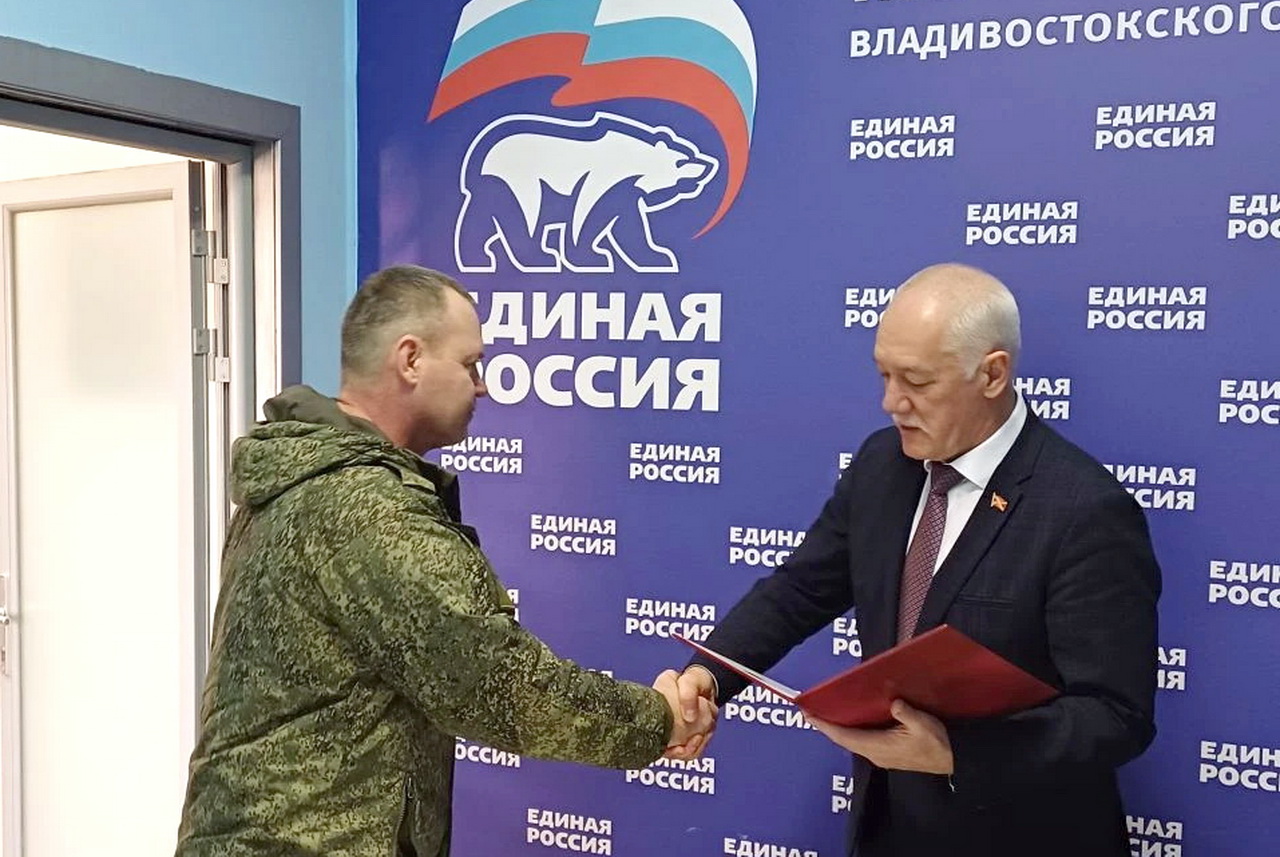 В местном отделении ВПП «Единая Россия» Владивостокского городского округа состоялась встреча с личным составом инженерно-саперного полка Тихоокеанского флота, активистами региональной общественной организации ветеранов правоохранительных органов Приморского края «Восточный форпост». За вклад в сохранение традиций патриотического воспитания молодежи, укрепление боевого духа военнослужащих руководитель РООВПО ПК «Восточный форпост» Денис Дорожкин награжден Благодарностью Думы города Владивостока.