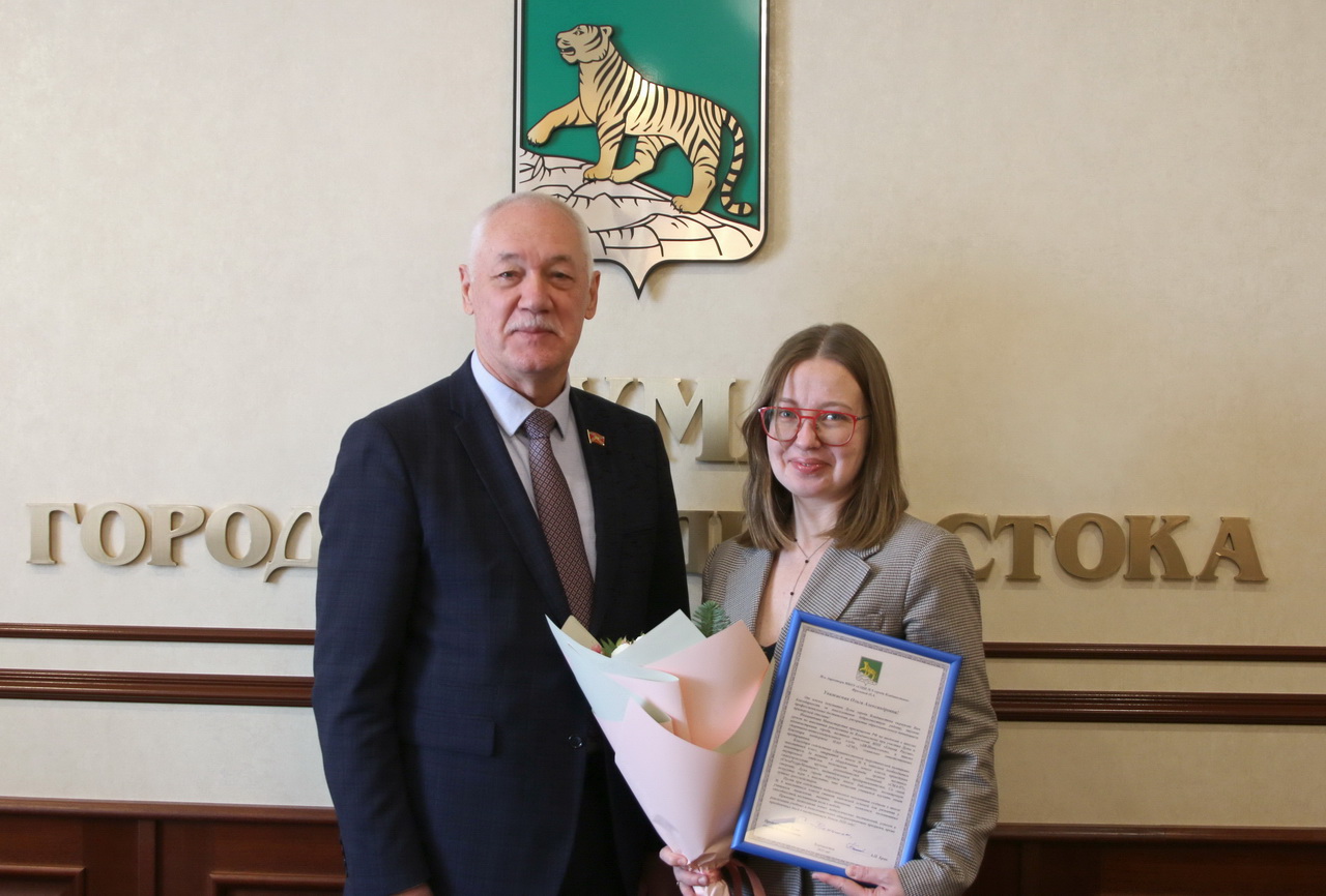 За содействие раскрытию образовательного потенциала приморской столицы Благодарственными письмами награждены и.о. директора МБОУ «СОШ № 9» Ольга Фролова, сотрудник школы Евгений Мурашев.
