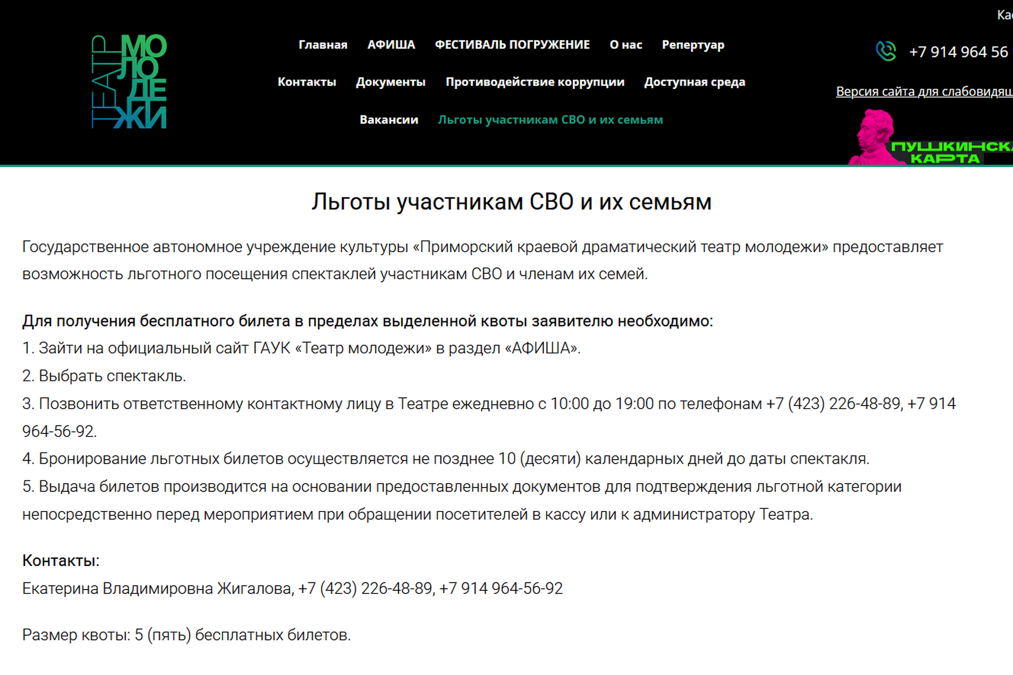 Театральные деятели, в их числе депутат Законодательного Собрания Приморского края, художественный руководитель ГАУК «Приморский академический краевой драматический театр им. Горького» Ефим Звеняцкий, директор ГАУК «Приморский краевой драматический театр молодежи» Игорь Селезнев, директор ГАУК «Приморский краевой театр кукол» Мария Ткачук, считают свое участие в распространении льготных билетов частью гуманитарной миссии по культурному развитию Владивостока.