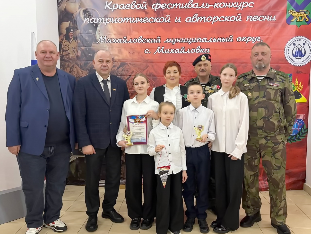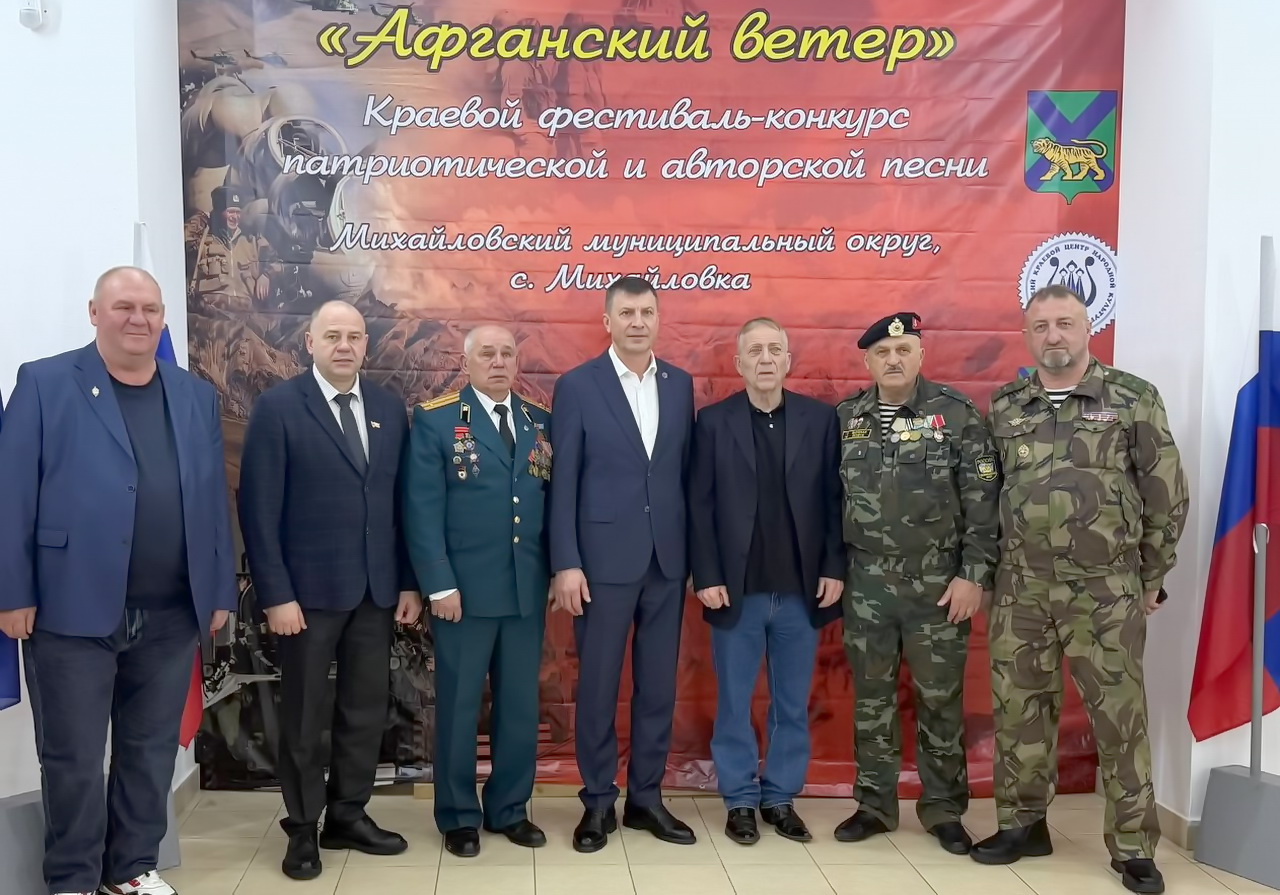 Кроме того, Виктор Тарабарин вручил награды победителям краевого фестиваля-конкурса патриотической и авторской песни «Афганский ветер». Гран-при удостоился творческий коллектив из города Спасск-Дальний ― вокальная группа «Секрет» Центра содействия семейному устройству. А сам фестиваль проводился в селе Михайловка. Масштабное творческое событие, организаторами которого выступили Приморское краевое отделение «Боевое Братство» и региональное отделение движения «Отцы России», объединило более 200 участников - от небольших поселков Приморья до столицы ДНР города Донецка, - которые представили жюри проникновенные выступления, посвященные мужеству и героизму защитников Родины.