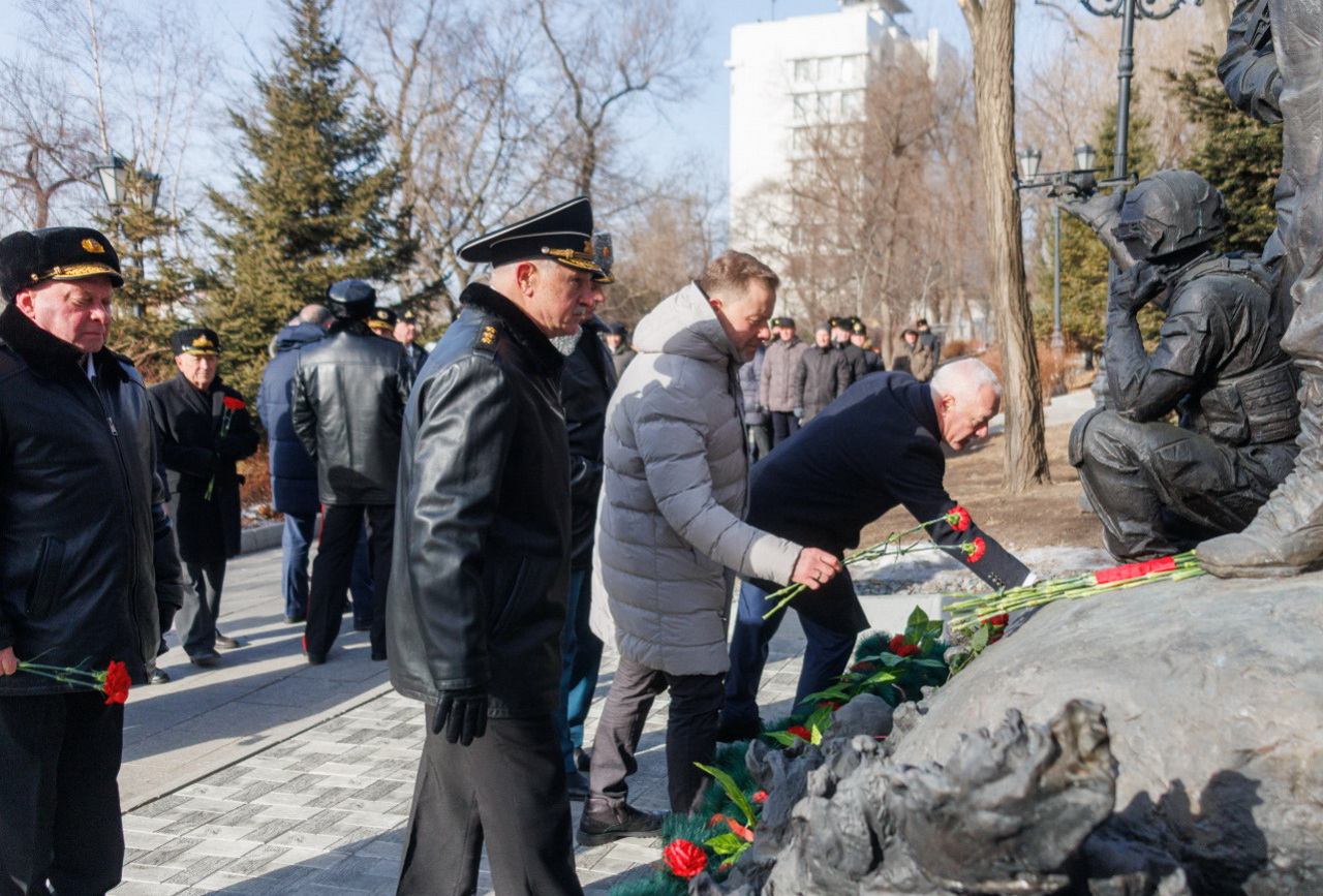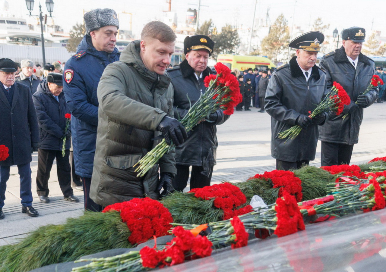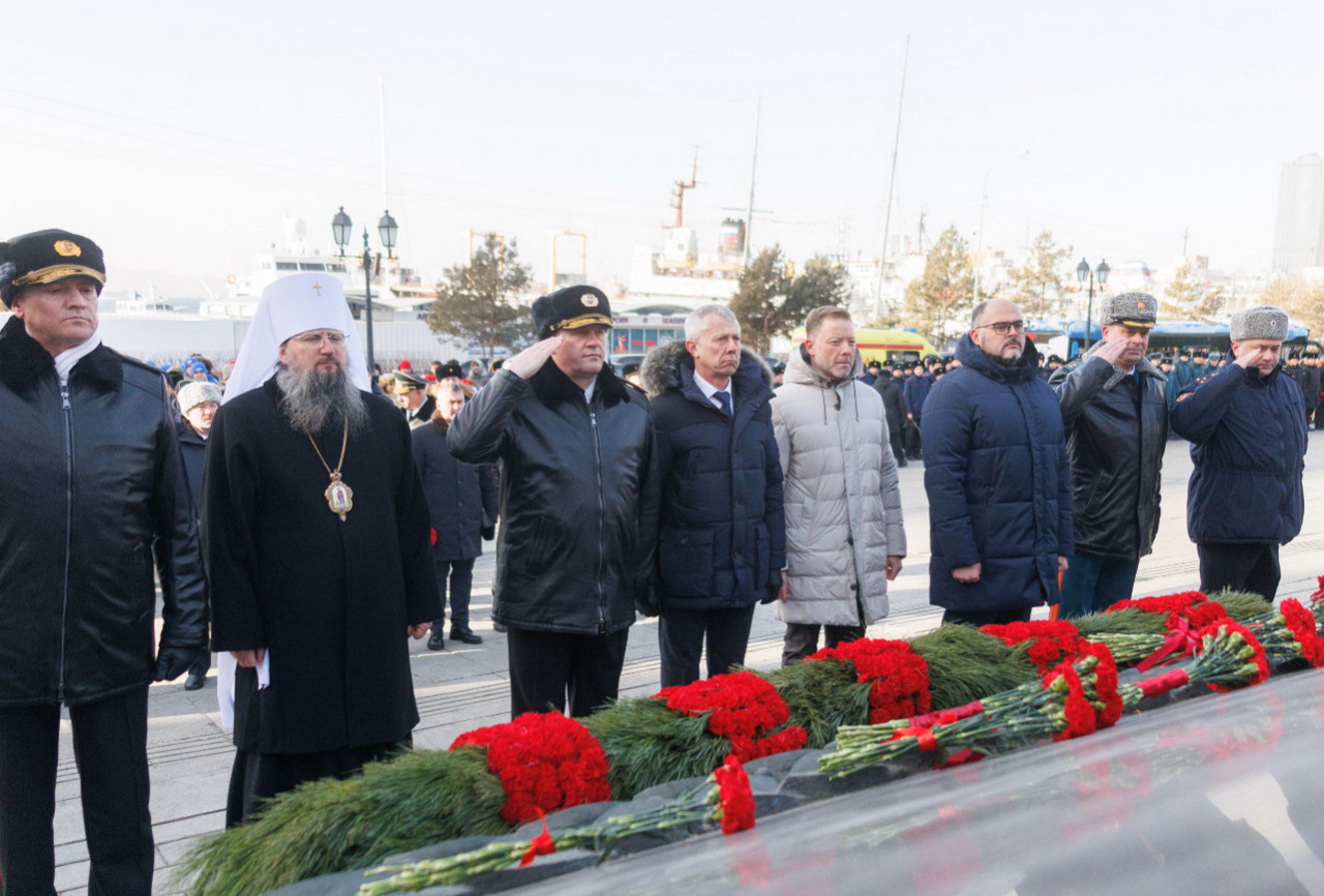 В память о защитниках Отечества состоялось возложение гирлянд и цветов к Вечному огню мемориала «Боевая слава Тихоокеанского флота». Накануне в Доме офицеров флота Губернатор Приморского края Олег Кожемяко, Командующий Тихоокеанским флотом Виктор Лиина, глава Владивостока Константин Шестаков, председатель Думы города Владивостока Андрей Брик, адмирал Константин Сиденко поздравили моряков-тихоокеaнцев с Днем защитника Отечества.
