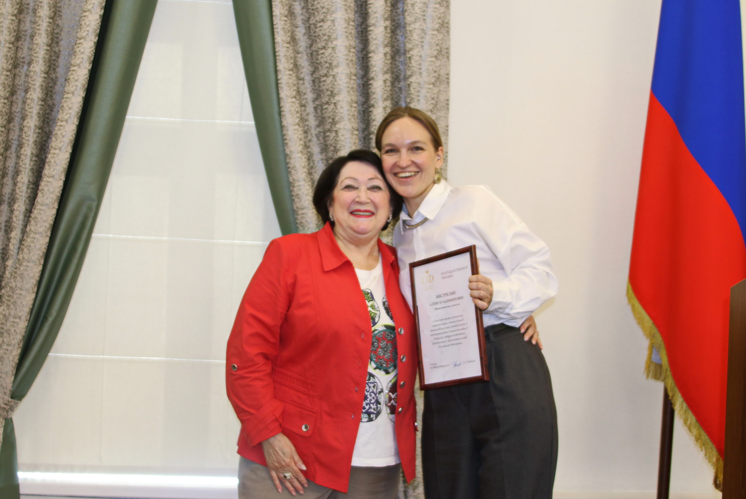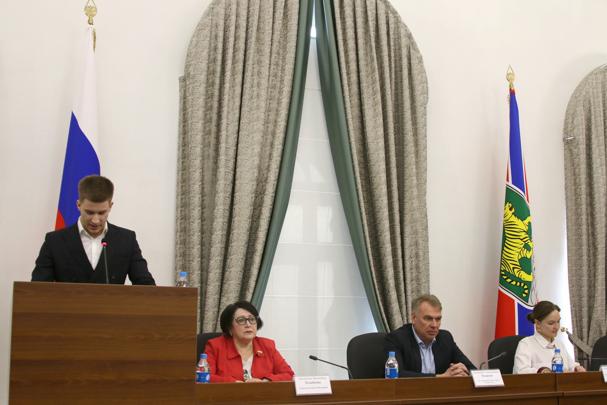 За вклад в укрепление традиций патриотизма, развитие молодежной политики сенатор Людмила Талабаева вручила Благодарственные письма председателю Общественной молодежной палаты при Думе города Владивостока Александру Примаку, члену палаты Руслану Красовскому, а также передала награду для общественного деятеля, правозащитника Алены Нестреляй.